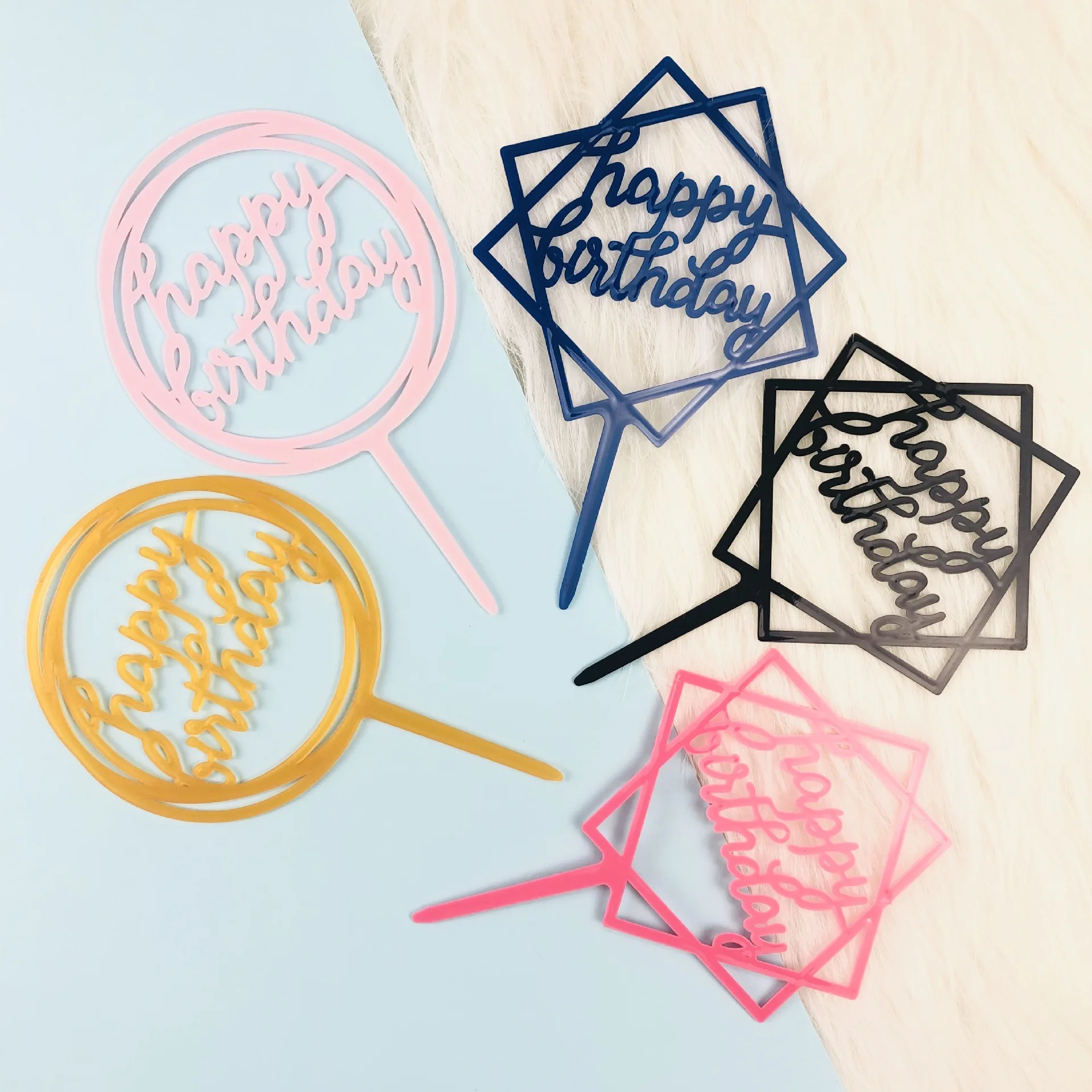 Акриловая открытка для торта на день рождения, 1 шт., украшение для выпечки, открытка для торта на день рождения, топпер для торта (золотистый), украшение для дня рождения