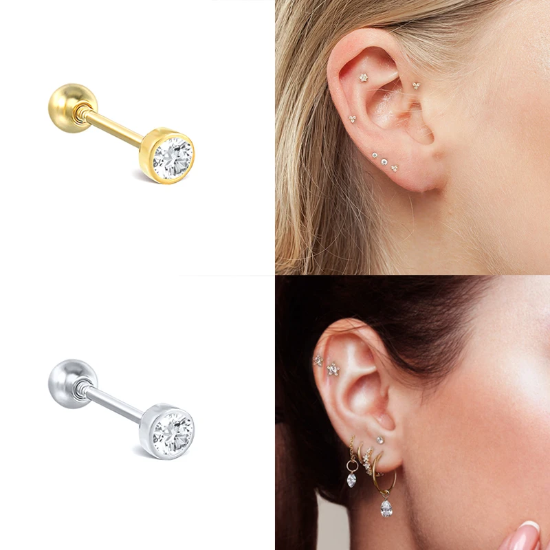 Simple Round Stud EarringsPiercing Zircon Crystals Stud Earrings