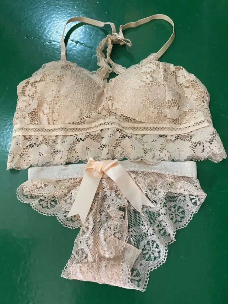 Комплект женского кружевного нижнего белья с бюстгальтером пуш-ап и трусиками