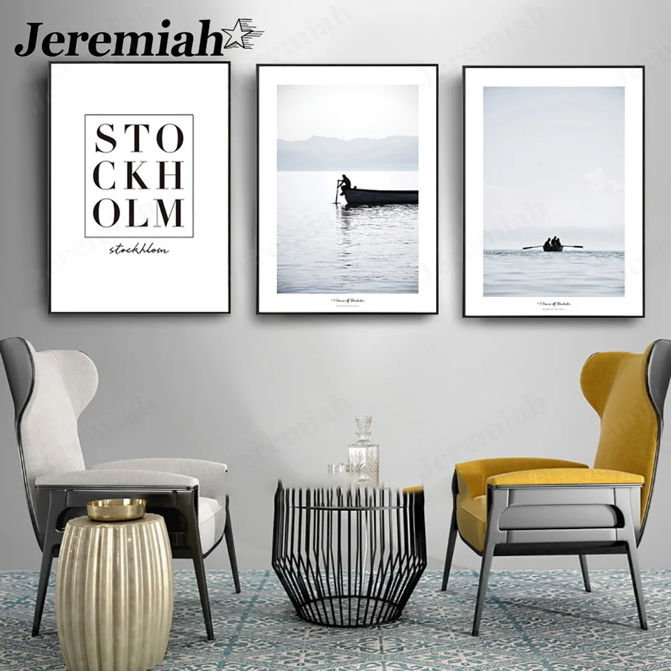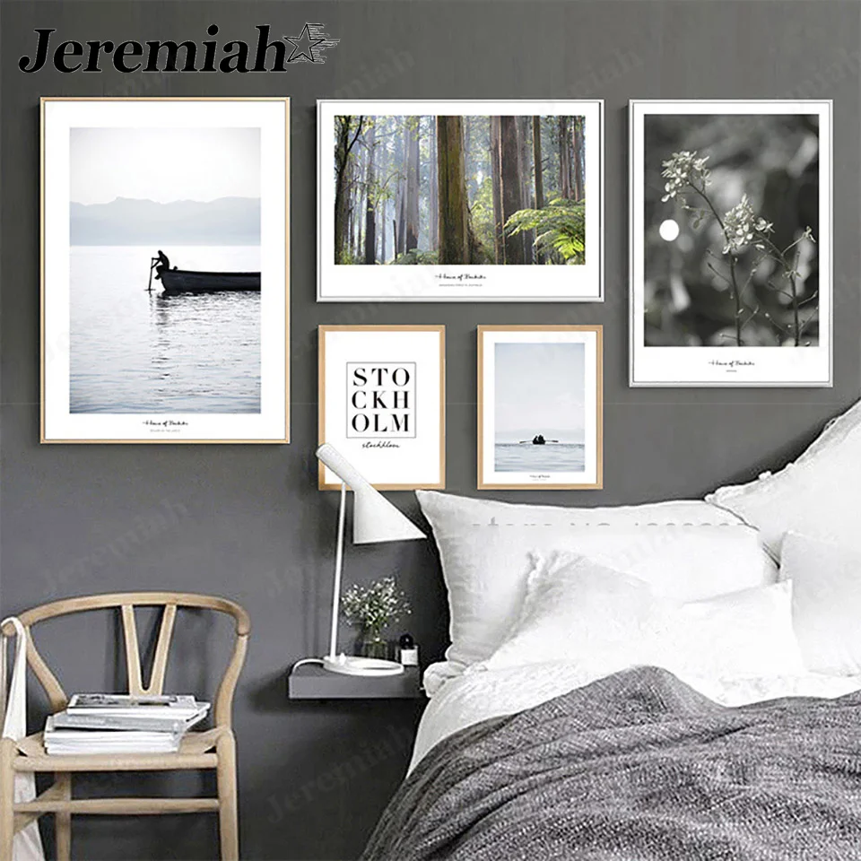 Современный лес пейзаж, холст, живопись, старик на рыбалке плакат Лодка, настенное искусство, скандинавский Декор для дома, гостиной, аксессуары