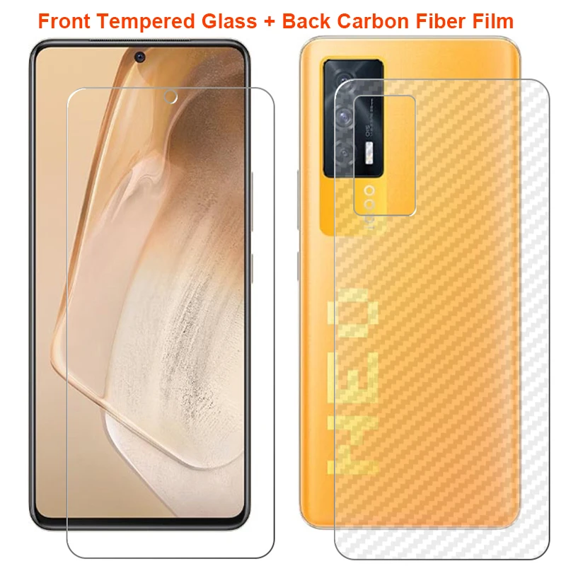 Screen Protector TypeFront HD Clear Tempered Glass + Behind Back Carbon Fiber Sticker Film