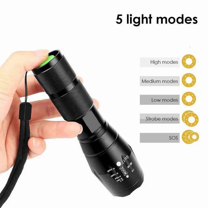 Особенности:1. Корпус этого фонаря изготовлен из высококачественного алюминиевого сплава и имеет очень прочную конструкцию2. Внутренняя проводка применяет высокоэффективную цепь бустера и может максимально использовать батареи3. Отличная водонепроницаемость, подходит для наружной среды, неблагоприятных погодных условий, за исключением дайвинга4. Функция фокусировки, позволяющая фокусировать луч.Характеристики:1. Модель: E172. Тип Излучателя: T64. Количество ламп: 15. Цвет света: холодный белый6. Срок службы светодиодный: 100000 часов7. Режимы: 58. Расположение режимов: Высокий> Средний> Низкий> стробоскоп> Sos > Zoom in & out9. Максимальное расстояние освещения: 500 м10. Конфигурация батареи: 1*18650/3 x AAA батареи11. Входное напряжение: 3,6-4,2 в13. Тип переключателя: Clicky/Clickie14. Расположение переключателя: Хвостовая крышка15. Линза: выпуклая линза16. Особенности: масштабируемый17. Материал: алюминиевый сплав18. Цвет: черный