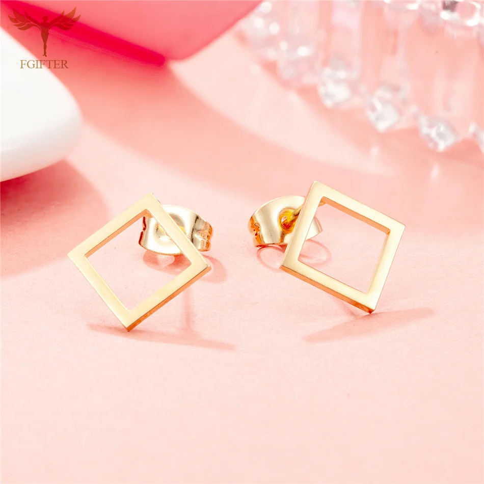 Серьги-гвоздики из нержавеющей стали, розовое золото