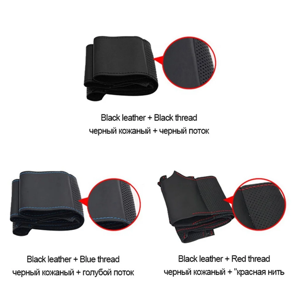 DIY черная искусственная кожа Чехол рулевого колеса автомобиля для ...