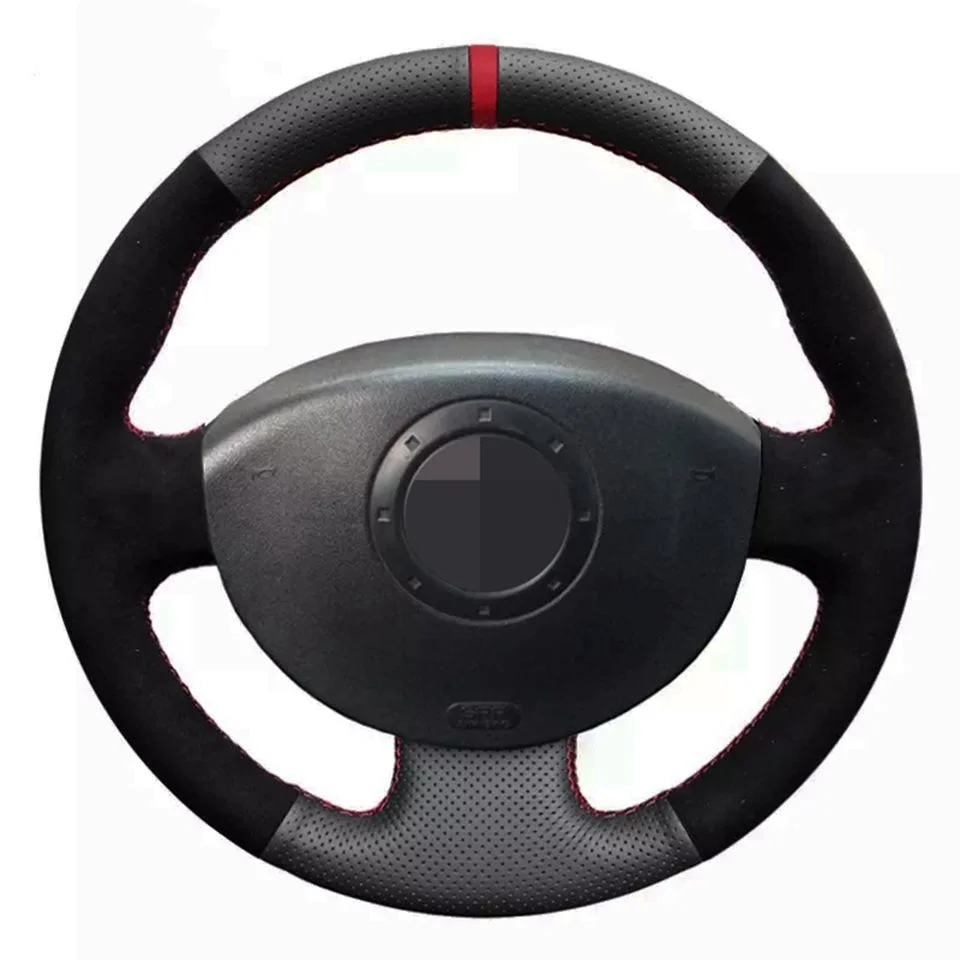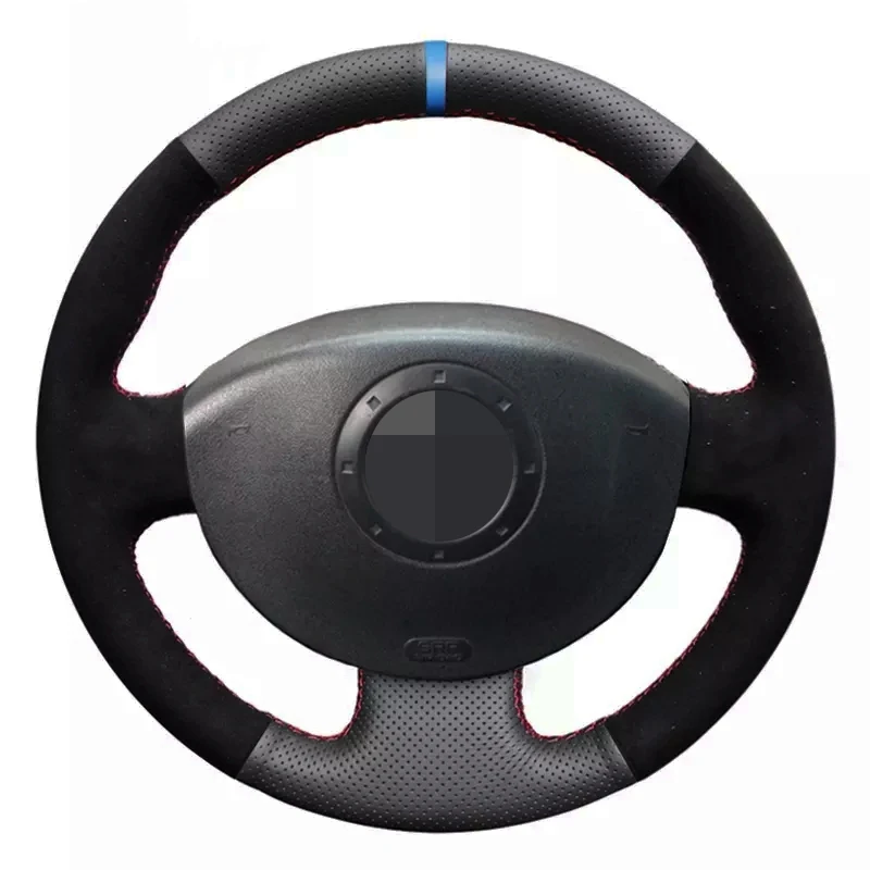 Мягкая черная натуральная кожа черная замша чехол рулевого колеса автомобиля для Renault Megane 2 2003-2008 Scenic 2 2003-2009 Kangoo 2008