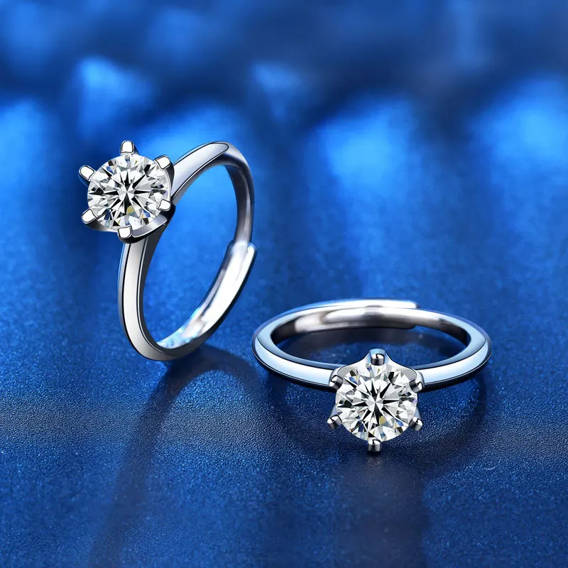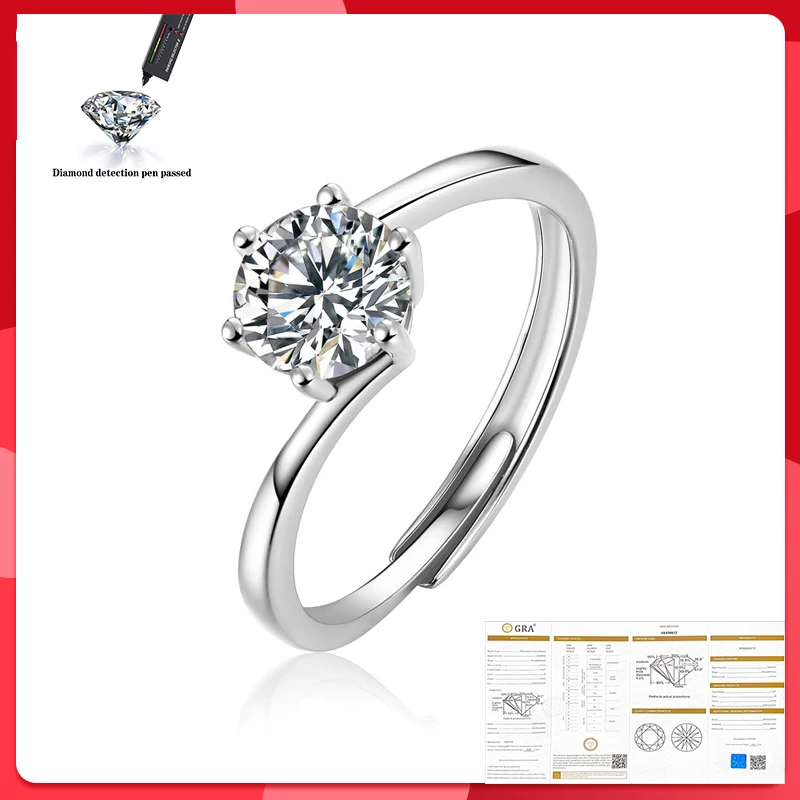 Женское Обручальное кольцо с муассанитом, регулируемое кольцо из се...