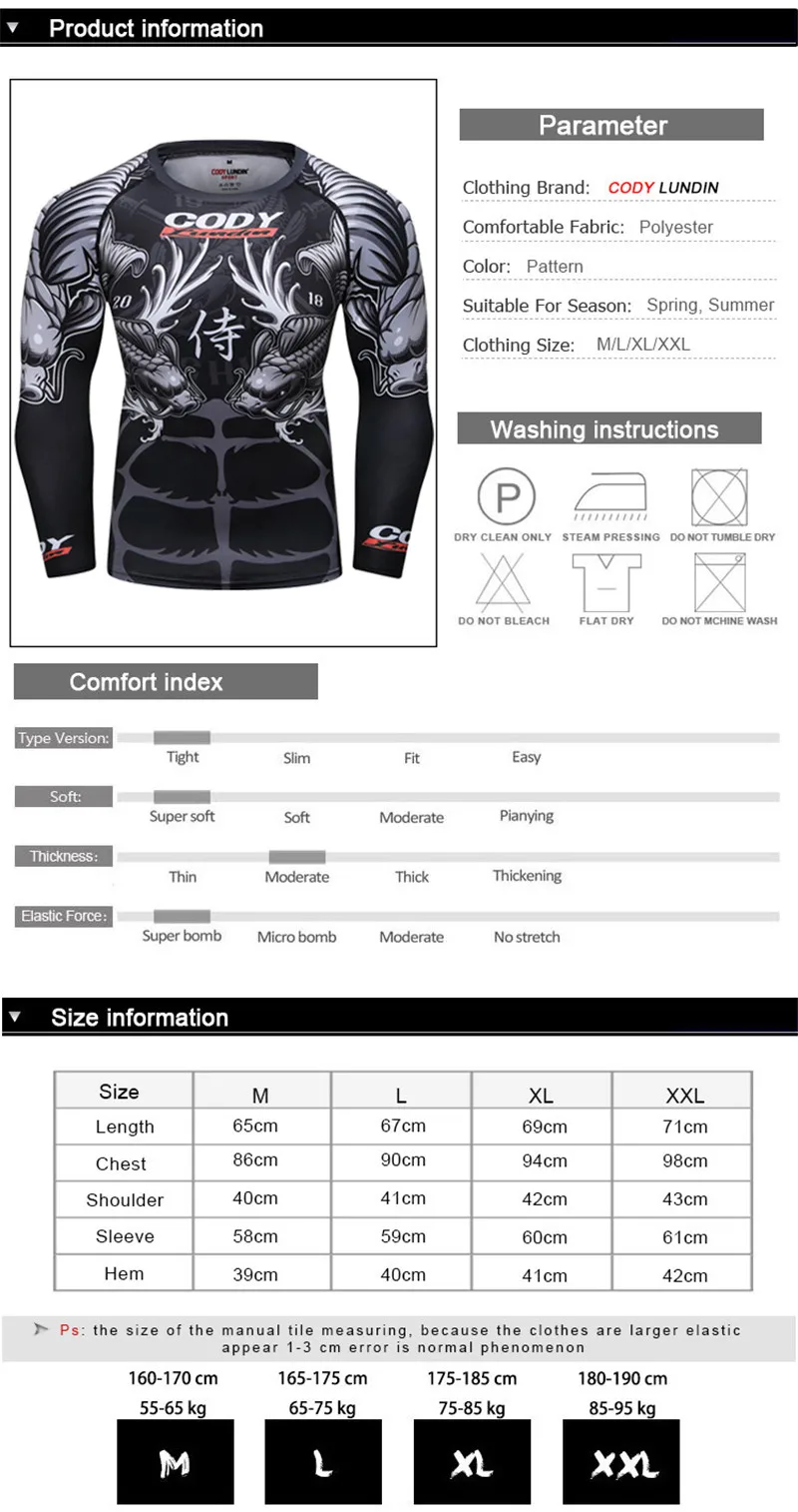 Футболка для бега cody MMA, мужские футболки с длинным рукавом Rash...