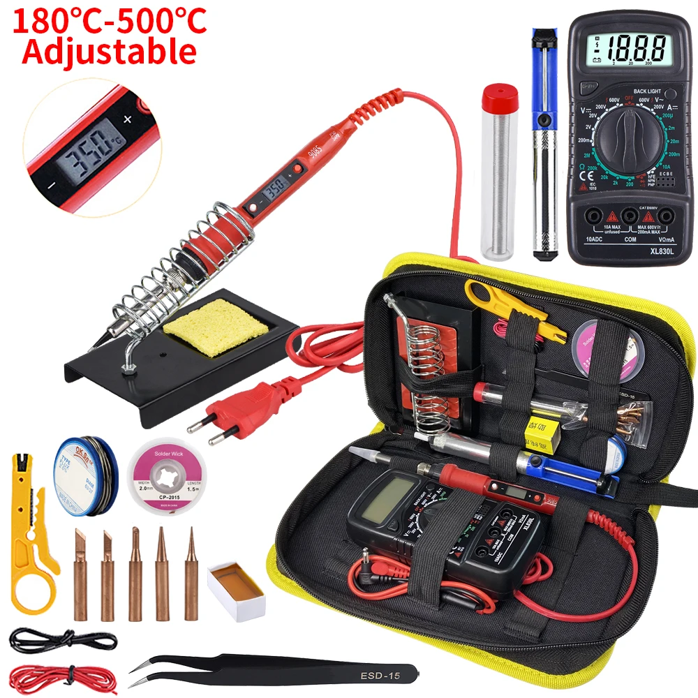 JCD/ Набор паяльника с регулируемой температурой, 220 В, 80 Вт, паяльные сварочные инструменты с ЖК дисплеем, керамические паяльные нагревательные жало, насос для распайки