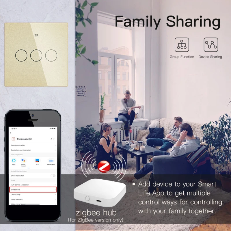 Работает с TUYA ZIGBEE HUB: коммутатор не может работать отдельно, должен работать с tuya zigbee hub (не входит в комплект).