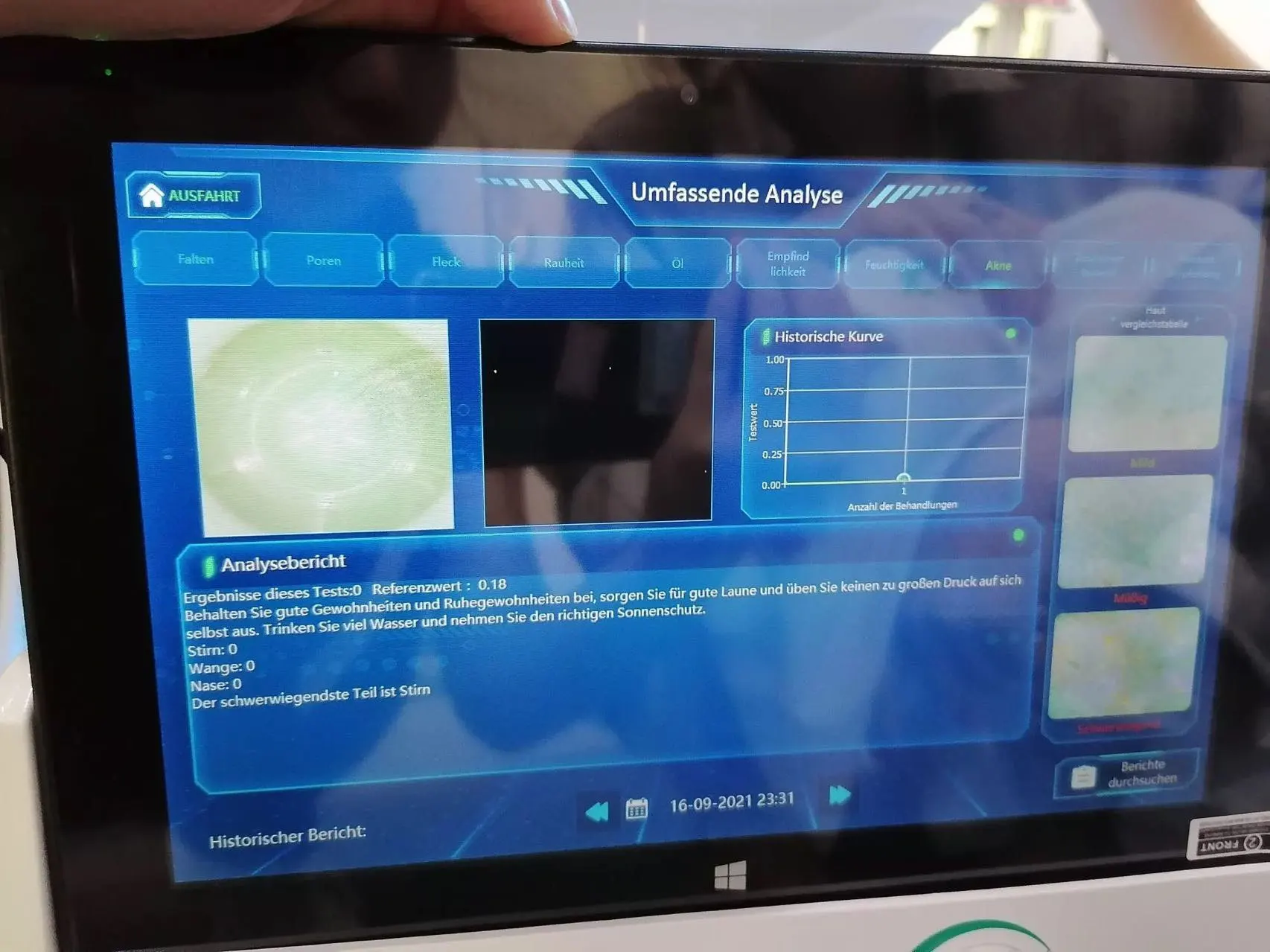 Камера обновлена до 24 миллионов пикселей, а режим камеры является дополнительным: КОМПЛЕКСНОЕ обнаружение, одноточечное ОбнаружениеТрехспектральный (Эпидермальный слой, дермис слой, УФ-свет) видео высокой четкости, видеосъемка большой площади, интерфейс высокой четкости (USB) подключен к камере для фотографирования, И интерфейс камеры может быть использован взаимозаменяемо до и после (выберите в соответствии с привычками использования клиента)Тестовые элементы (анализ цвета кожи, водно-масляной баланс, анализ тонких линий, анализ воспаления, анализ пятен, анализ пор)