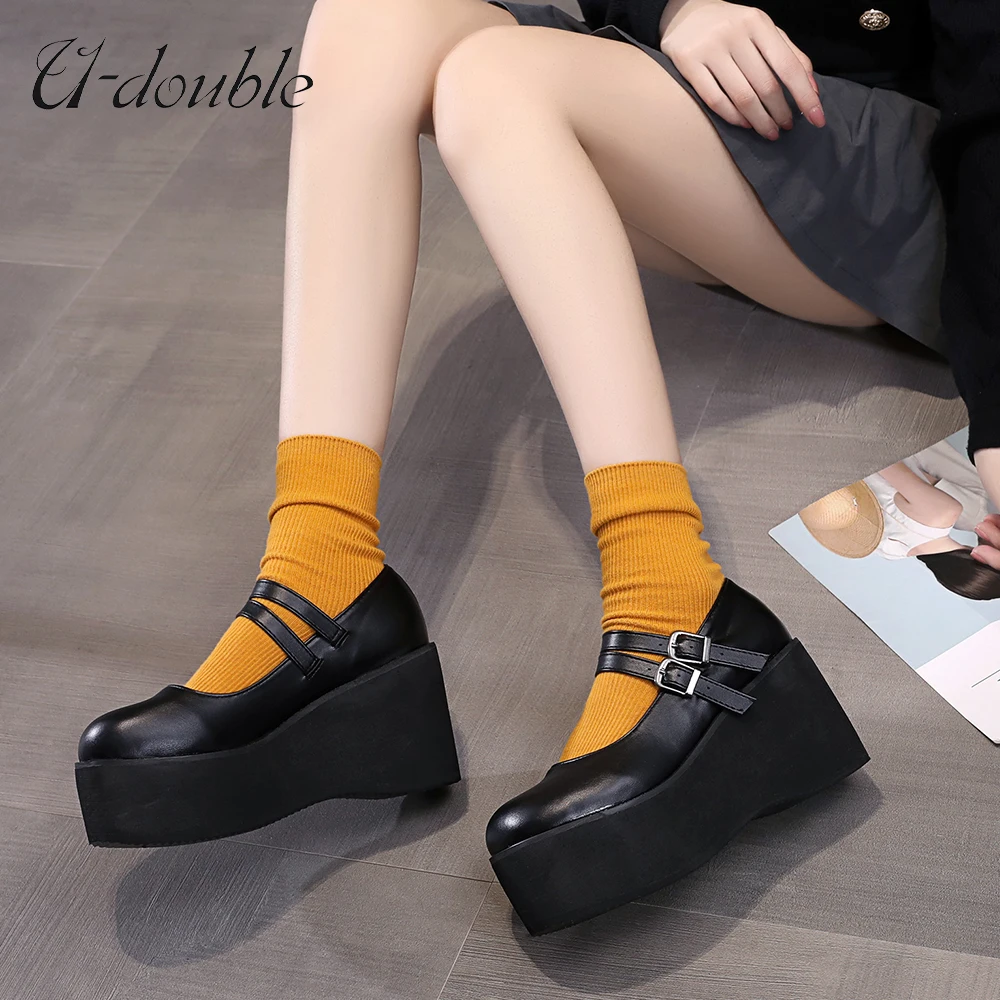 U-DOUBLE новые женские милые туфли-лодочки Мэри Джейн туфли-лодочки на платформе и высоком каблуке милые готические женские туфли в стиле панк