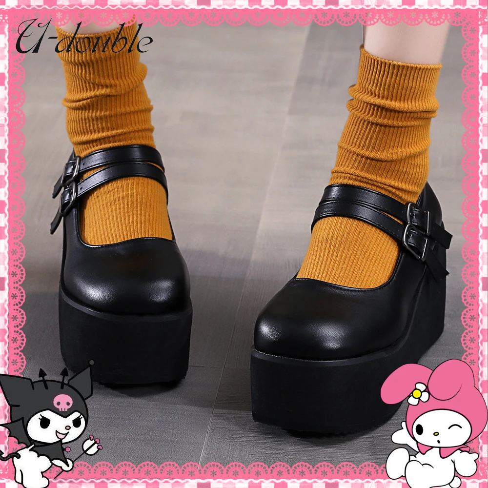 Новинка U-DOUBLE, женские милые туфли-лодочки Мэри Джейн в стиле Лолиты, женские туфли-лодочки на платформе и высоком каблуке, милые готические туфли женские туфли в стиле панк