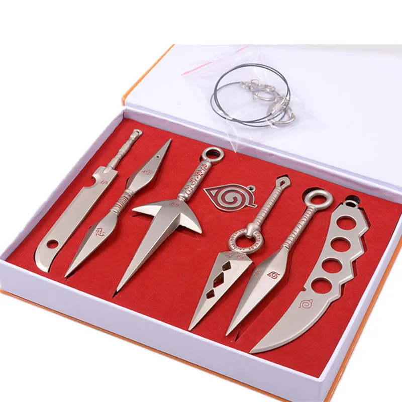 7 шт.компл. сплав игрушечные мечи Военный нож ниндзя Hatake Kakashi Deidara Kunai Shuriken фигурка оружие игрушки Косплей игрушка подарок для мальчика