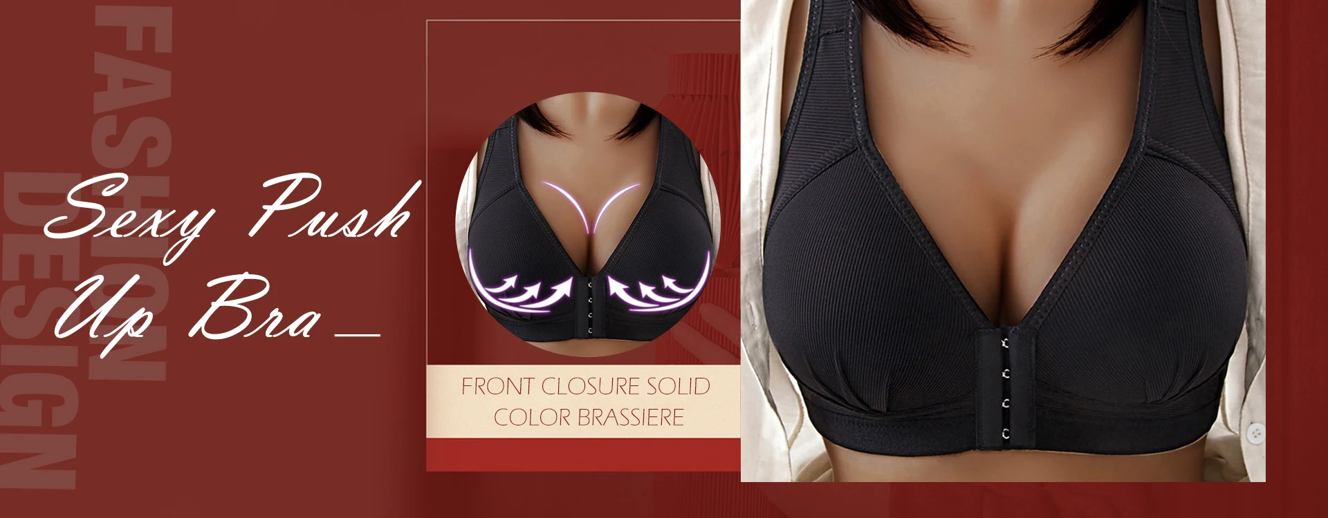 Бюстгальтер пуш-ап однотонный без косточек, с застежкой спереди