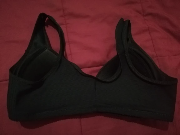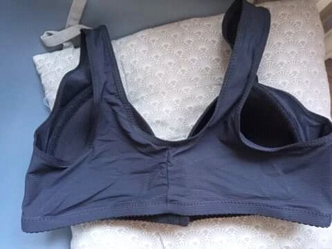 приятная ткань, на спине широкая,дышащая ткань. размер чашки маловат, грудь сдавил к центру. но под блузку с глубоким вырезом самое то.