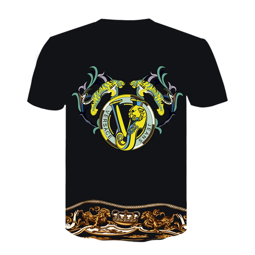 Футболка мужская с коротким рукавом, брендовая тенниска в стиле барокко с принтом золотистой цепочки, роскошная Роскошная майка в Королевском Стиле, Топы И Футболки в стиле хип-хоп, Новинка лета 2021