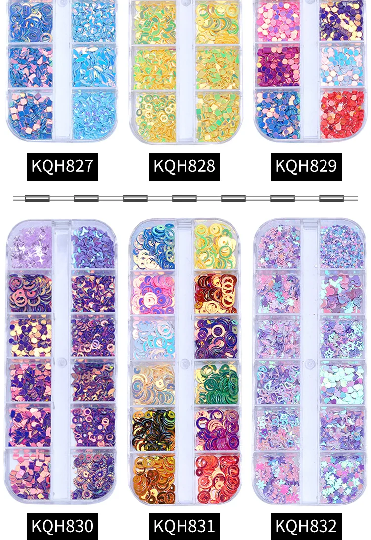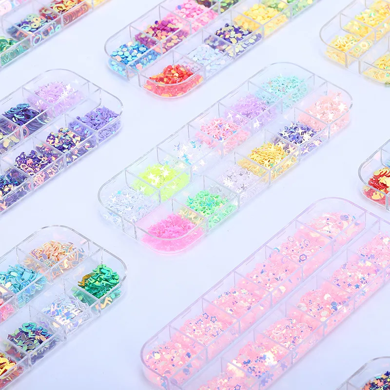 Блестки для ногтей 12 цветов в коробке, блестки для ногтей разных ф...