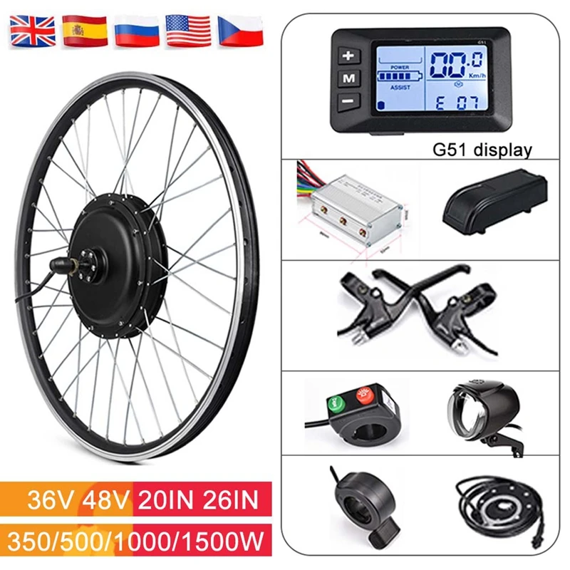 Комплект для переоборудования электровелосипеда YIYI G51 2026in, комплект моторных колес 36 в 48 в 350 Вт 500 Вт, комплект для переоборудования переднего и заднего колес электровелосипеда