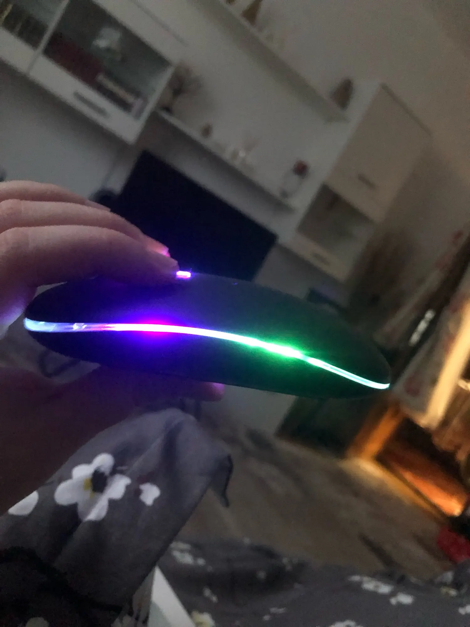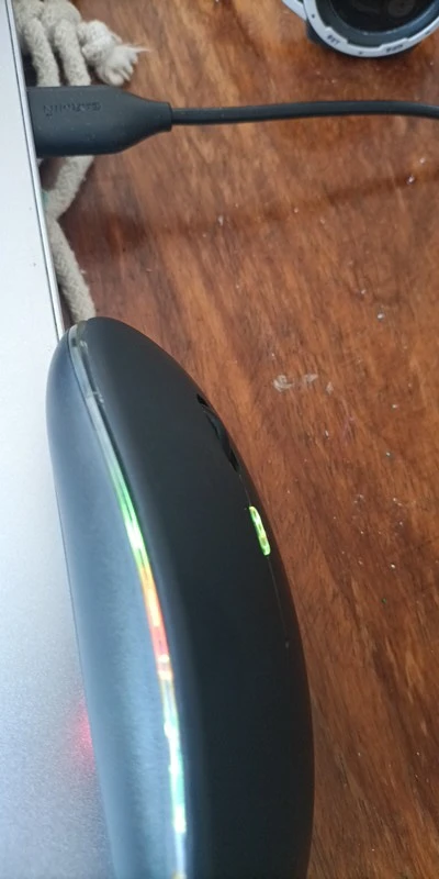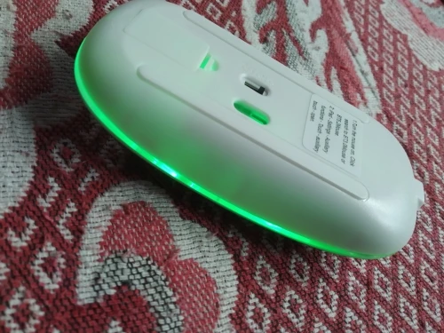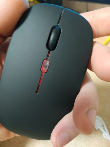Прикольная мышь. Весьма компактная, имеет встроенный аккумулятор + недлинный кабель для зарядки. Есть 3 позиции выключателя. 1. Выключено. 2. Включена, как обычная мышь. Светится красным когда активна. Не горит, если не несколько секунд. 3. Включена, светится постоянно и плавно меняет цвета, Прикольно. но аккум сядет намного быстрее.