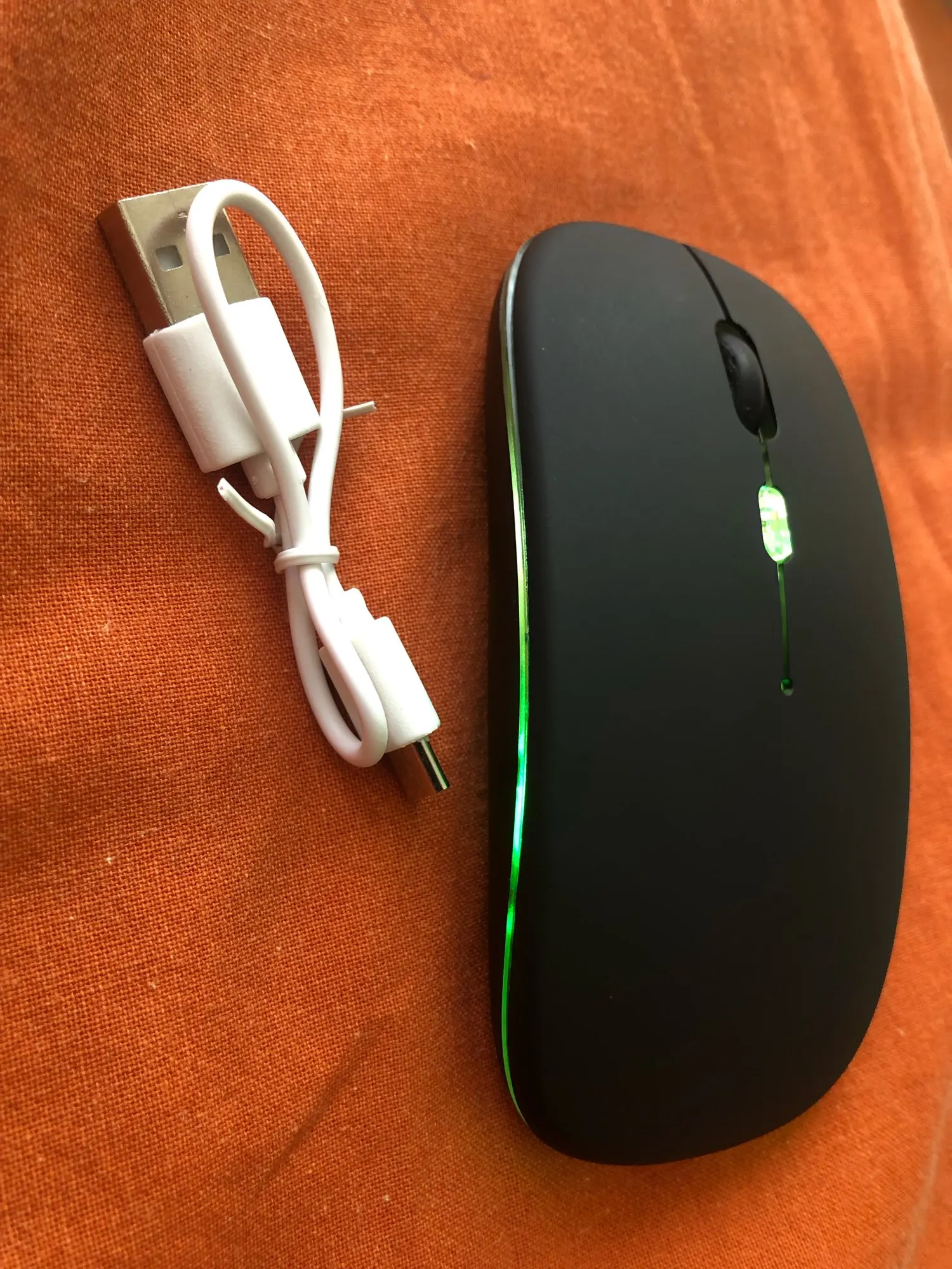 хорошая мышка, соответствует описанию, заряжается по кабелю от компьютера, подсветку можно отключать