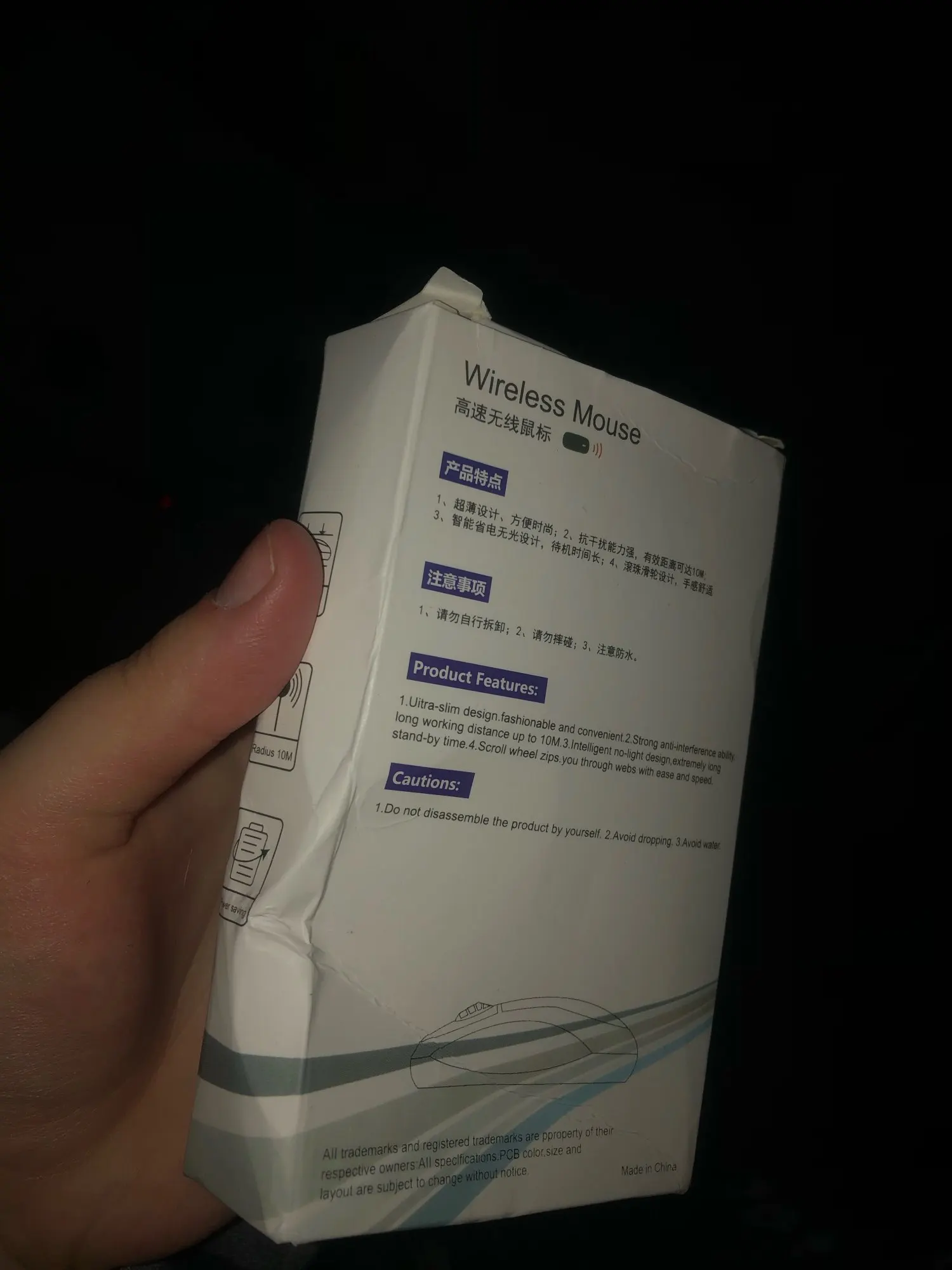Получил по укрпоште, с виду все соответствует, сразу включилась засияла как елка всеми цветами, приконектил к смартфону, указатель мыши двигается, скрол и кнопки работают, на коробке указано 1200dpi, в комплекте юсб проводок для зарядки ее акб, в отсеке на мыше сидит видимо блютуз приемо-передатчик, буду тестить далее.