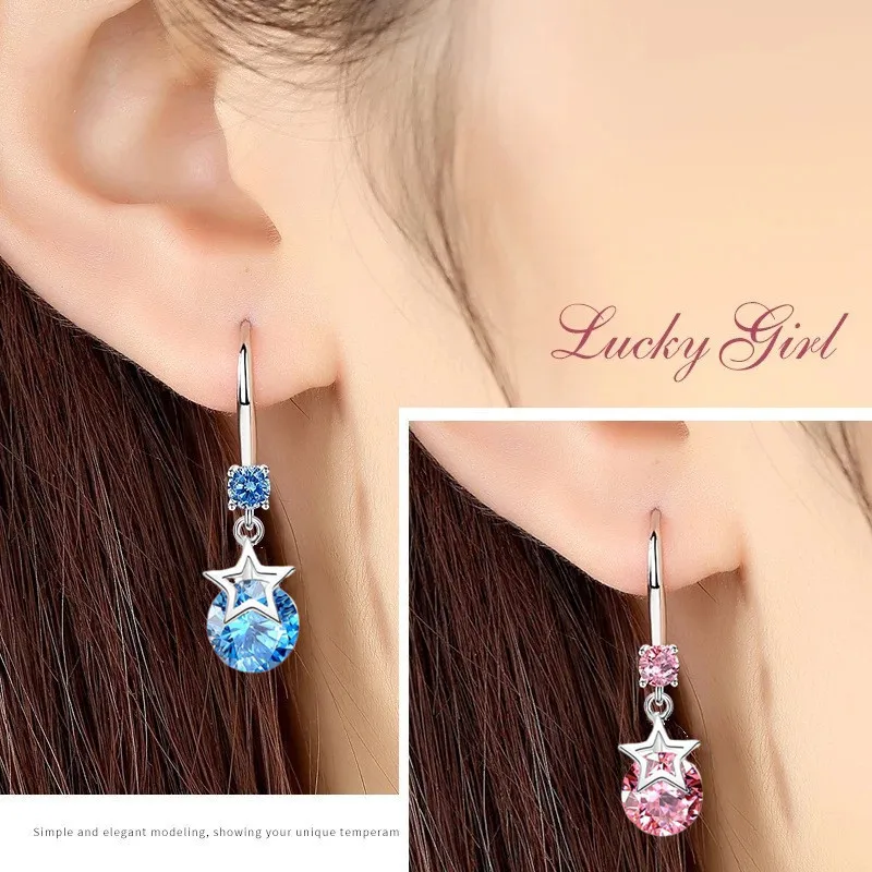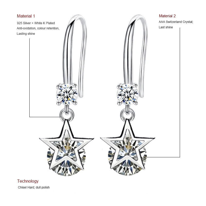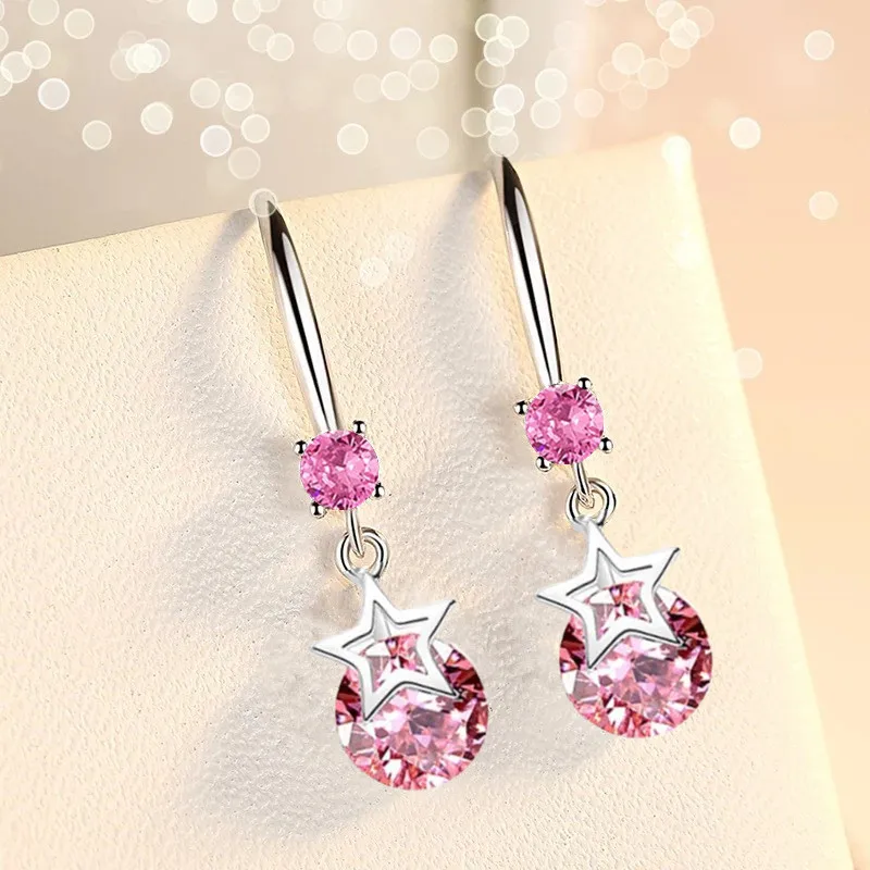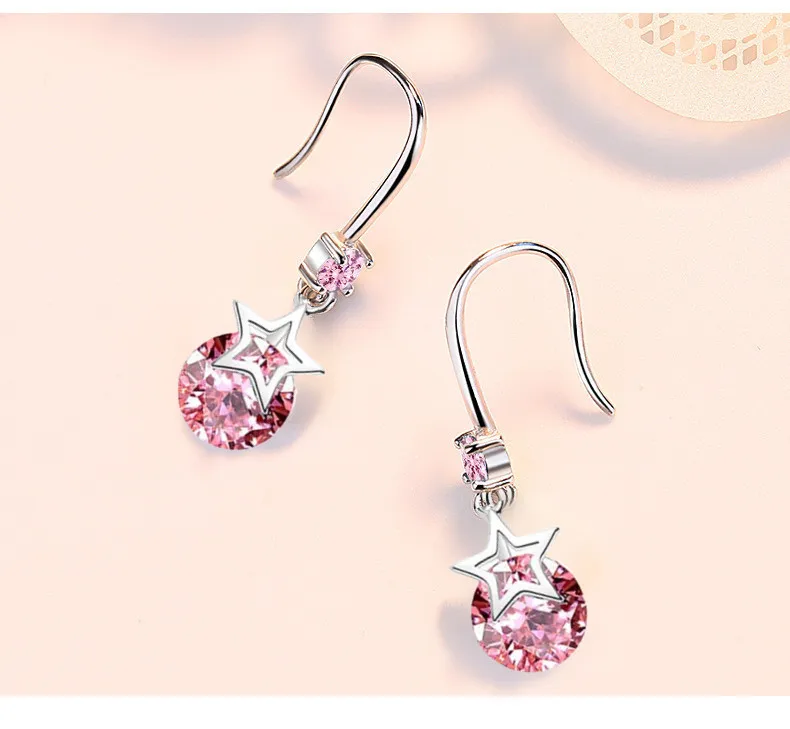 С блестящими звездами; Комплект из подходящих длинные серьги со шпилькой, для Для женщин 925 пробы Серебрянные циркониевые ювелирные изделия, ювелирные изделия видов расцветки, коллекция Brincos Bijoux (украшения своими руками) KY1117
