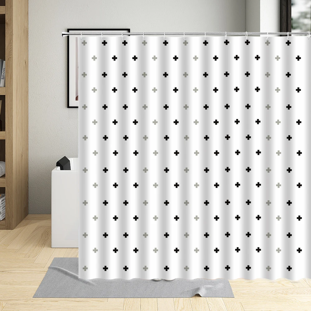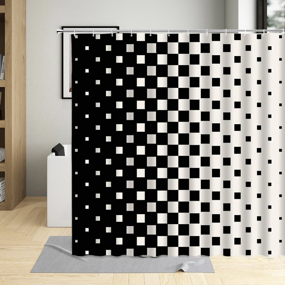 Классическая черно-белая занавеска для душа, водонепроницаемая ткан...