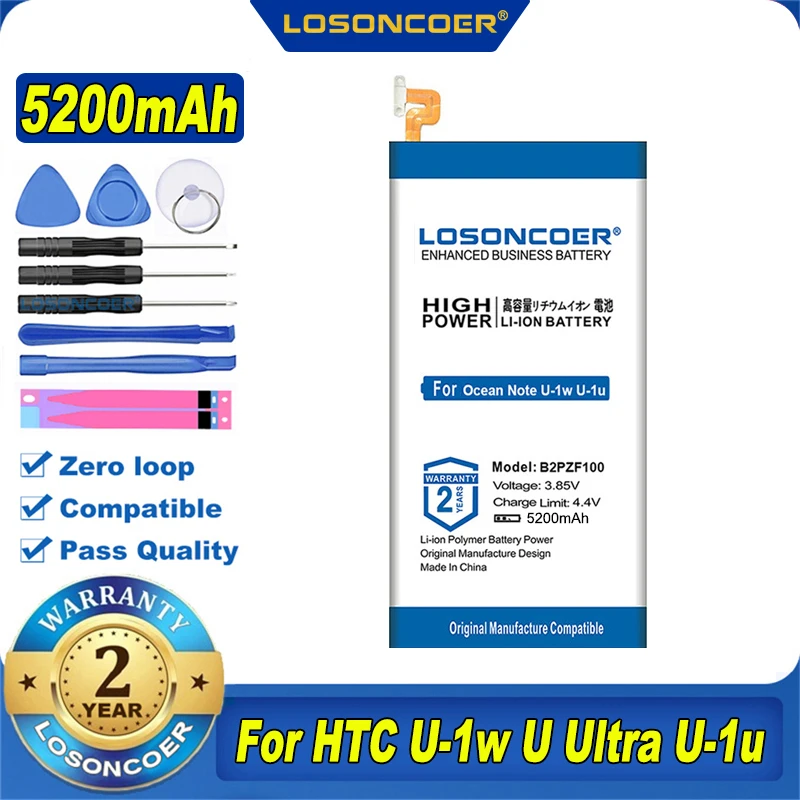 100% Оригинальный аккумулятор LOSONCOER 5200 мАч B2PZF100 для HTC Ocean Note U-1w U Ultra U-1u