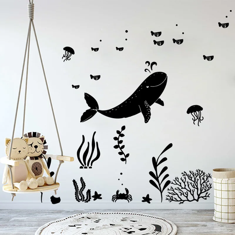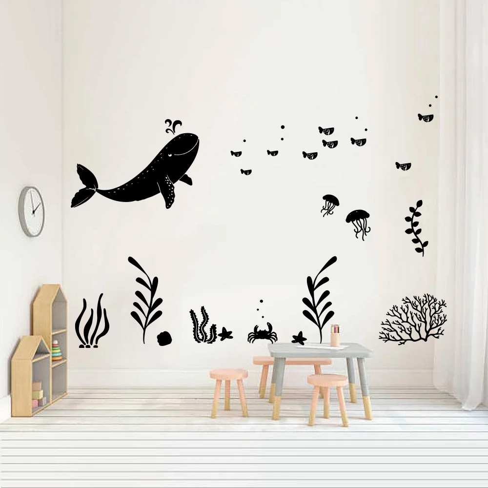 Большие под морем животные стикеры на стену-океан Кит Рыба Осьминог морская Наклейка на стену детская комната спальня винил домашний декор
