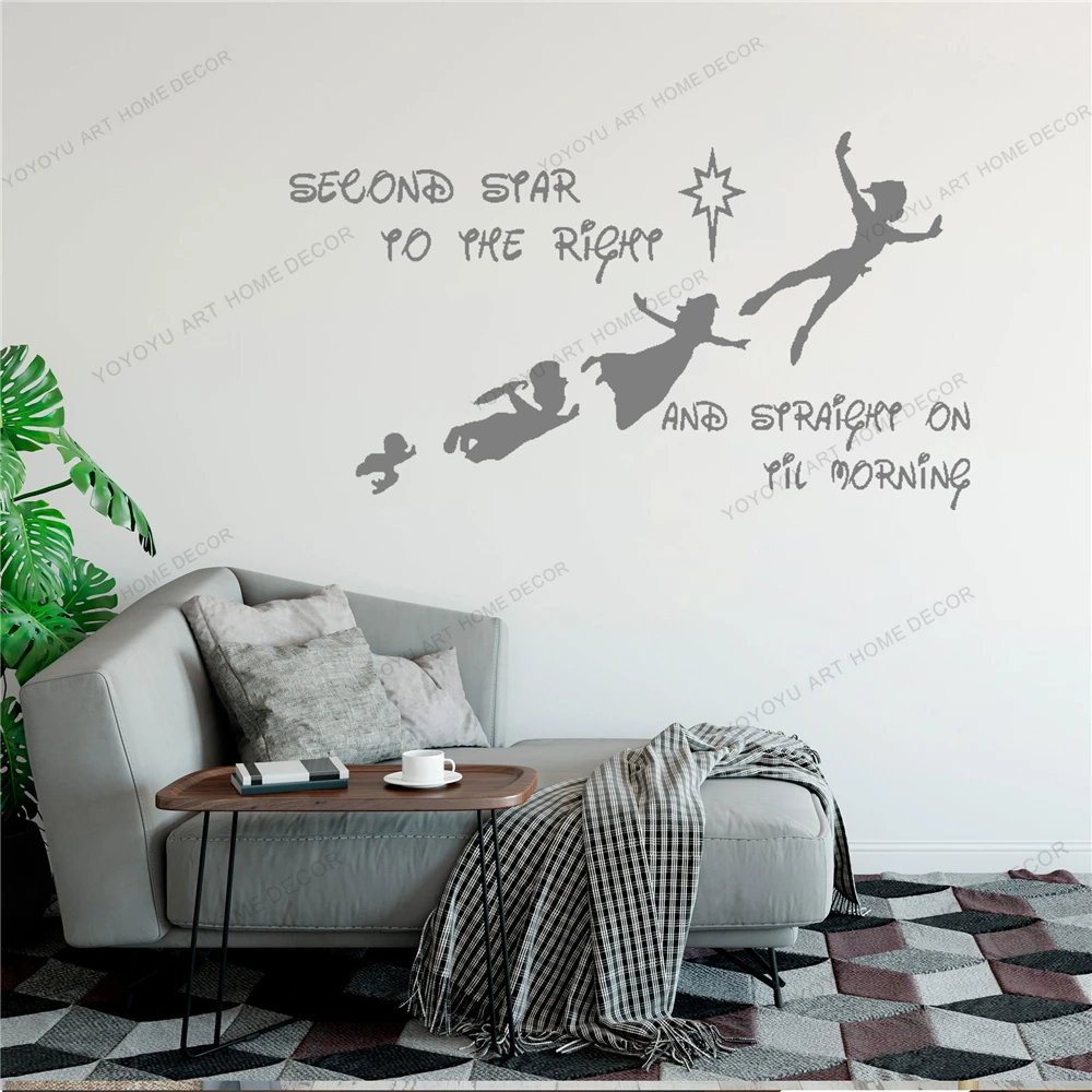 Новинка, Лидер продаж, модная Наклейка на стену Питер Пэн с изображением второй звезды, детская спальня, детская виниловая наклейка, декор DW9946