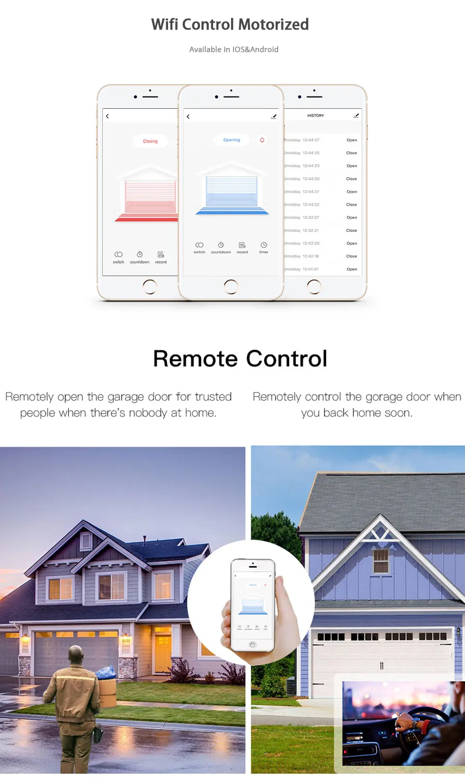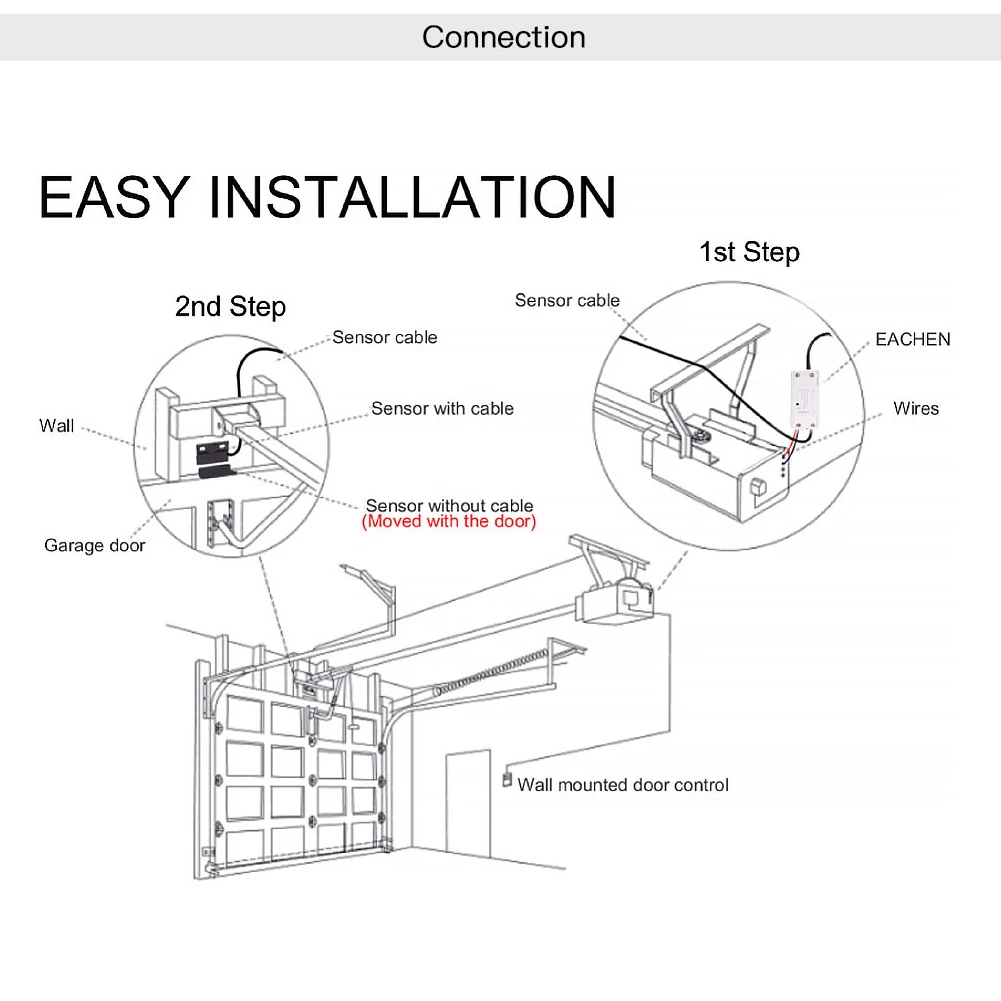Характеристики контроллера открывания Гаражных дверей: WiFi смарт гаражные двери управления Лер и гараж открыть закрыть монитор совместим с Alexa Echo , Google Home Голосовое управление не требуется концентратор Удаленный мониторинг: вы можете открыть или закрыть дверь с помощью приложения. Вы можете проверить открытую или закрытую дверь гаража в режиме реального времени. Вы можете уполномочить несколько человек получить доступ к вашему гаражу. Простота в использовании: мгновенно Управляйте гаражной дверью, нажав на приложение TUYA или SMART LIFE на вашем смартфоне. Просто подключите смарт-нож к сети Wi-Fi 2,4G. Голосовое управление: вы можете активировать открывалку двери гаража, поместив голосовую команду на ваше устройство Alexa или Google Assistant или управляя возле двери гаража Широкая совместимость: вы можете использовать только один контроллер для открывания гаражных ворот. Совместимость с большинством общих открывателей гаражных дверей. Пожалуйста, проверьте наш список. Функция таймера: вы можете установить расписание, чтобы открыть и закрыть дверь гаража. Быстрая и простая установка, а также без необходимости профессионала. Нет скрытого Пн Функция обратного отсчета: вы можете установить время обратного отсчета, чтобы закрыть или открыть дверь гаража. Легко добавить устройство: 1. Дверь гаража будет активирована, когда она будет успешно добавлена (когда синий светодиодный светильник прекратит мигать), поэтому сначала закройте дверь. Включите гараж, а светильник ren и синий светильник тоже мигают. 2. Запуск приложения "Smart Life" или "Tuay Smart". Нажмите на значок '+' в правом верхнем углу. 3. Выберите «все устройства», затем выберите тип «Wi-Fi коннектор». 4. Нажмите "подтвердить индикатор быстро мигает" 5. Введите правильный пароль Wi-Fi 2,4G. Затем нажмите подтвердить. 6. Автоматически подключается к устройству. Как только процесс завершится, он подскажет вам, что вы можете переименовать устройство. Введите новое имя и фамилию.