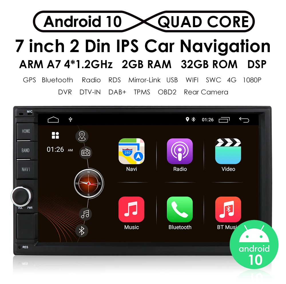 7 дюймов 2 Din HD 1024x600 4 ядра Android 10 автомобильный DVD GPS ...