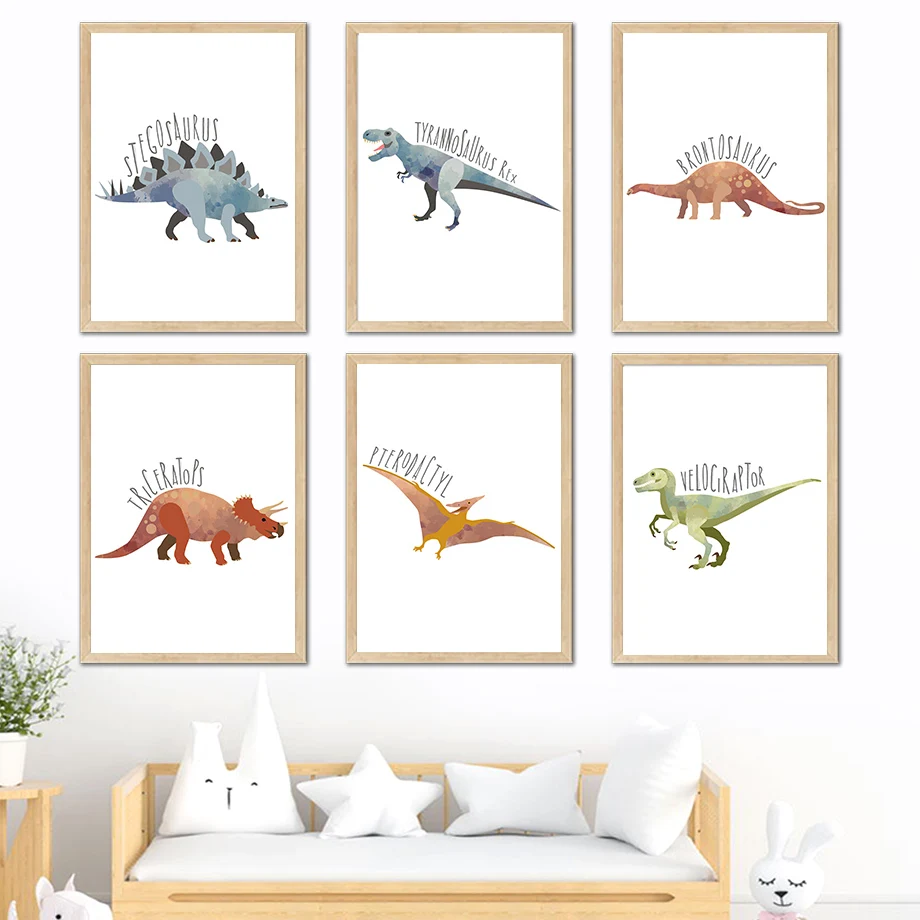 Акварельный динозавр птеродактил Трицератопс, настенная Картина на ...