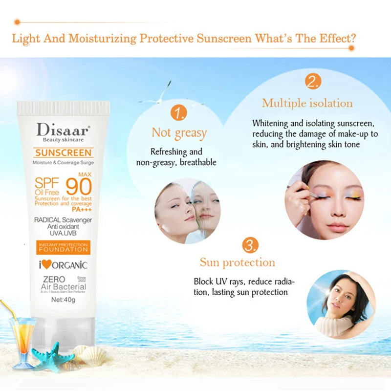 Солнцезащитный отбеливающий солнцезащитный крем для лица с эффектом солнца SPF 90, защитный крем для кожи лица против старения, контроль жирности, увлажняющий крем для лица