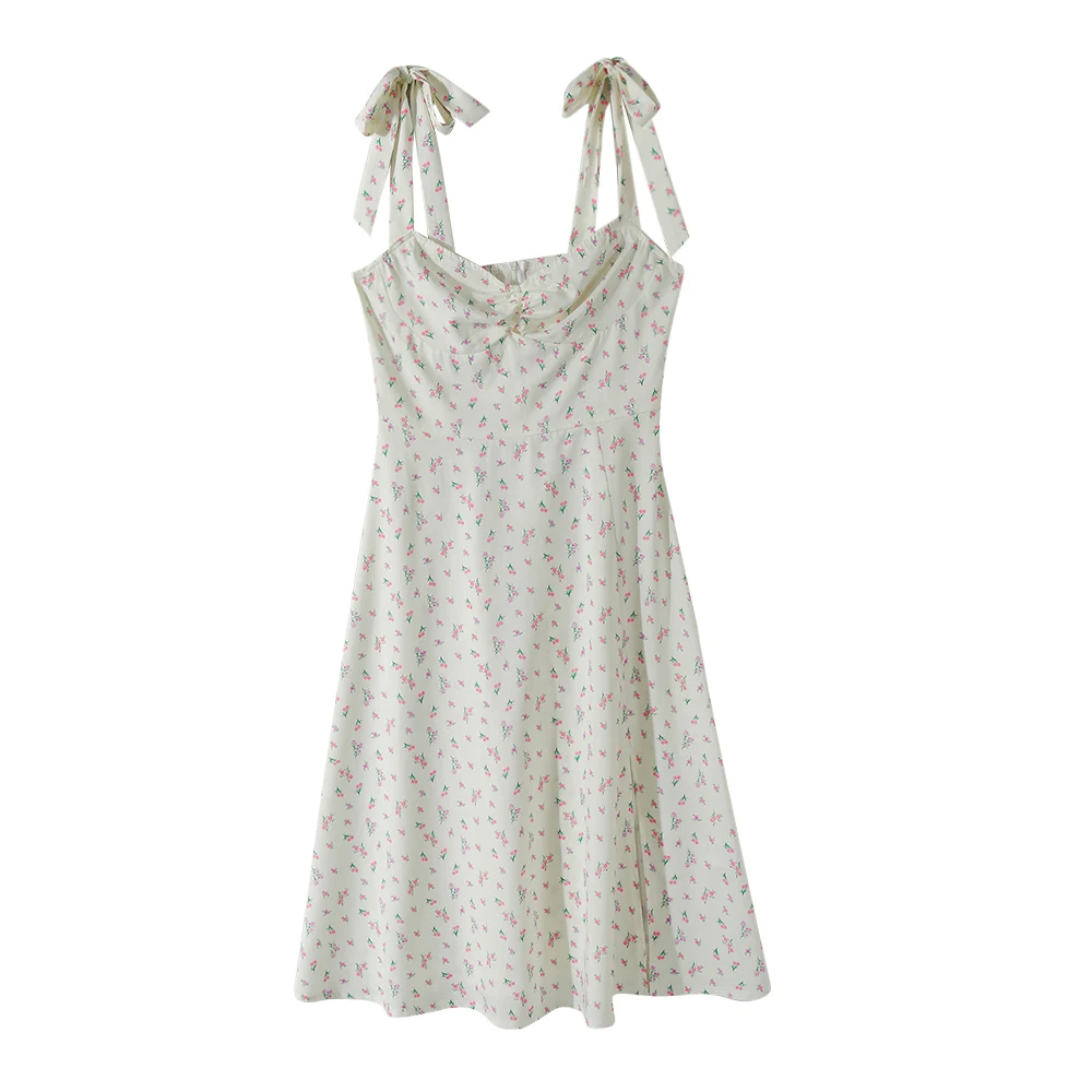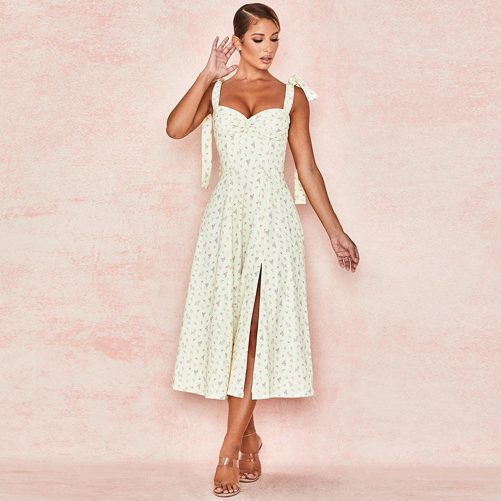 Женское платье с бантом на бретельках, с разрезом сбоку