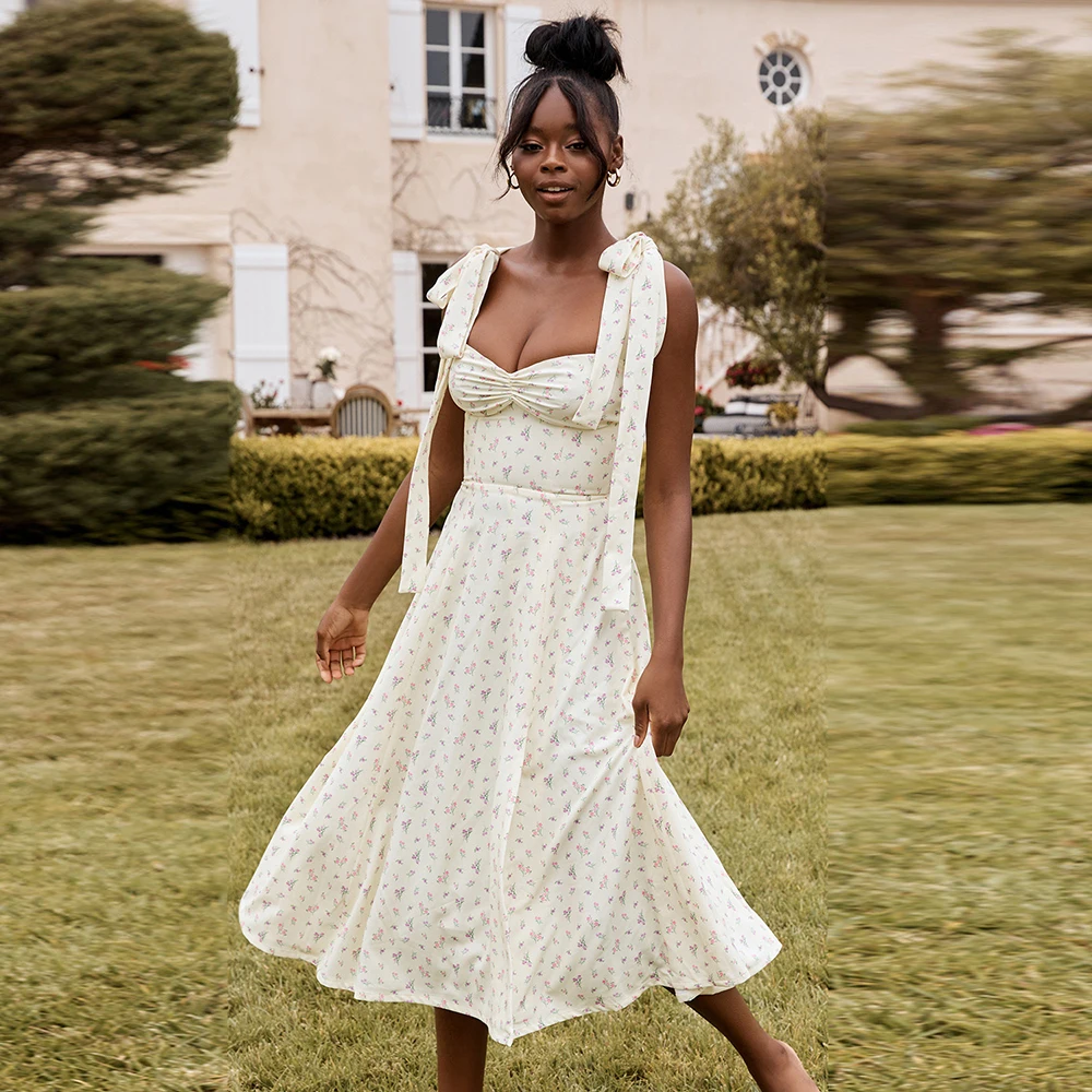 Женское платье-миди с бантом Traf Y2K, летнее Элегантное платье без...