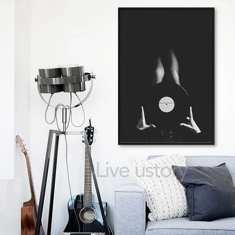 Аудио Музыка Ритм игра Татуировка холст художественные принты черный белый постер Холдинг виниловая запись настенные фотографии музыкальная студия современный декор