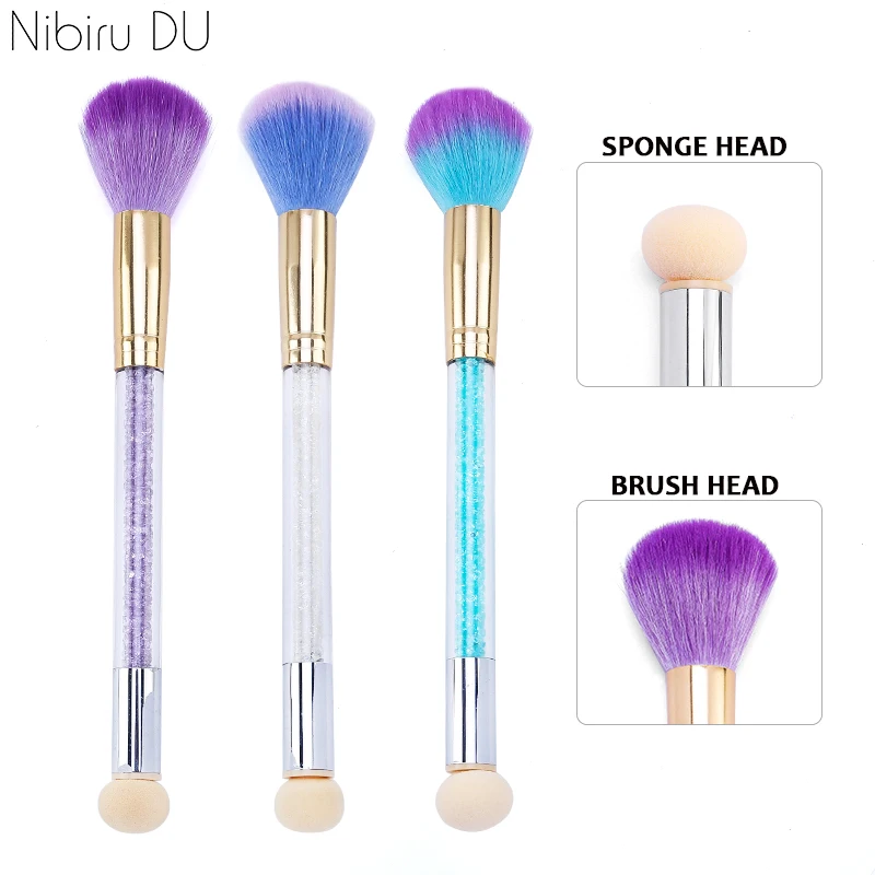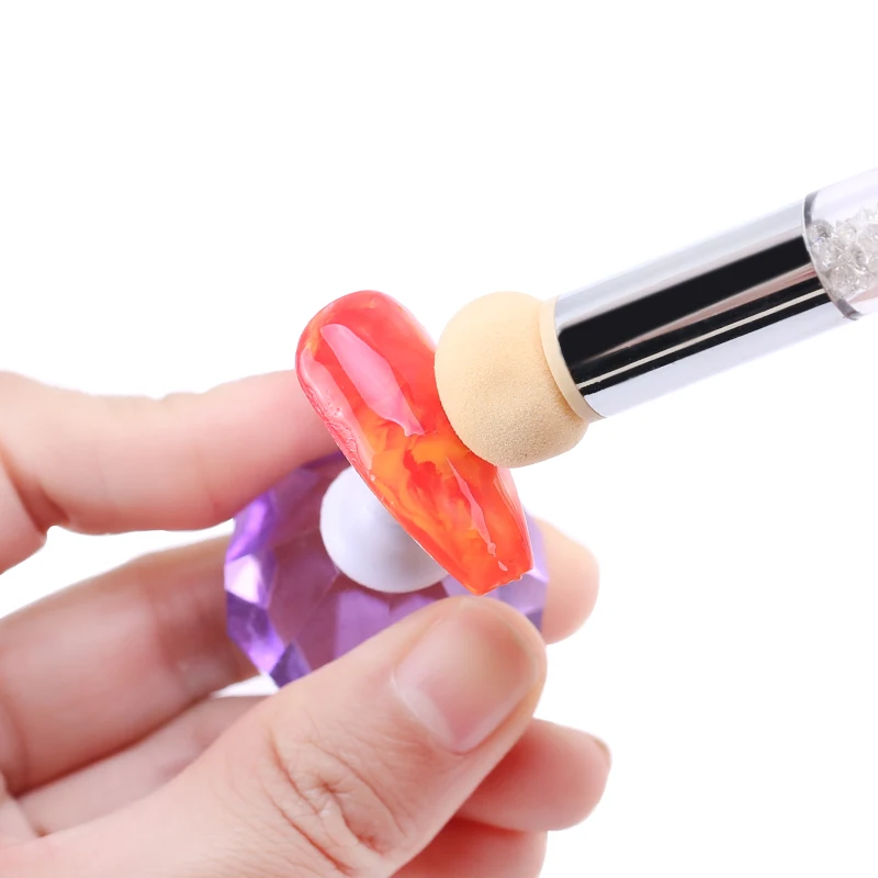 Кисти для ногтей, 1 шт., двусторонняя ручка, градиентный спонж, насадка для акриловой стразы, ручка для дизайна ногтей, инструменты для маникюра