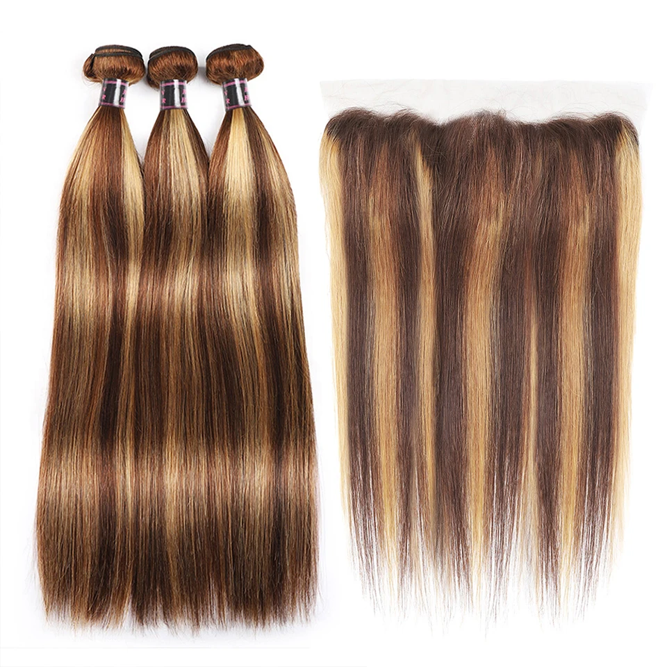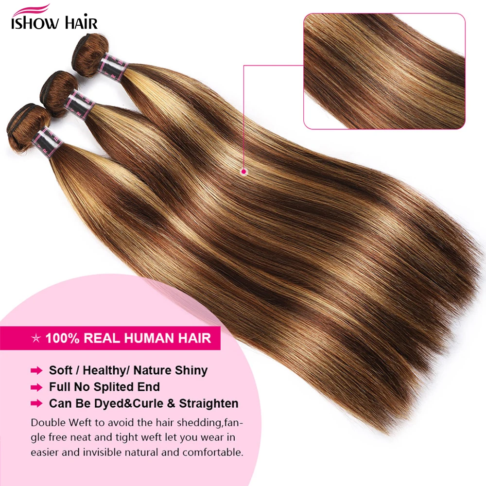 Пряди из натуральных каштановых волос Ishow, прямые пряди с фронтальной HD сеткой, 3 пряди с застежкой