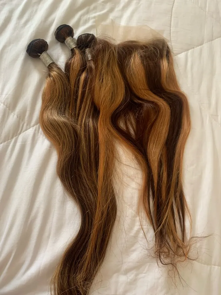 Волосы отличные. Быстрая доставка, и продавец очень отзывчив. Я окрасил его дважды, и он все еще выглядит хорошо. Качество волос хорошее, и пучки толстые. Передняя часть мягкая