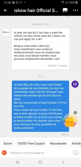 Arnaque 100/% j’ai commandé perruque et j’ai reçu des mèches