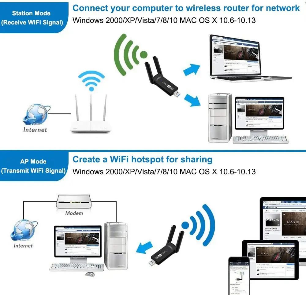 USB Wi-Fi адаптер 1200 Мбитс, 5,8 ГГц, 2,4 ГГц