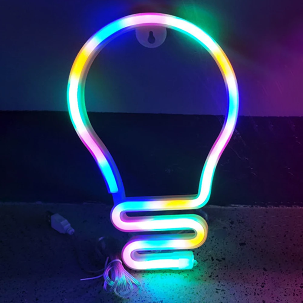 Светильник в форме лампы, светодиодный неоновый светильник, цветная Радужная неоновая вывеска, настенный ночной Светильник для дома, вечерние, праздничные, свадебные, праздничные украшенияСпецификация:Вход напряжение: 4,5 (V)Световой поток: 3 (лм)Материал корпуса: пластикМатериал изделия: ПВХВ зависимости от способа: подвесной ТипТип батареи: 3 батареи AA (без аккумулятора)Режим питания: USB + батарейный блокЦвет изделия: как показано на картинкеСлучаи: украшение магазина, день рождения, фотосессии, украшение детской комнаты и т. Д.Примечание:В связи с различиями мониторов и эффектами освещения реальный цвет товара может немного отличаться от цвета на фотографиях. Спасибо!Возможны отклонения в 1-3 мм вследствие измерений вручную.