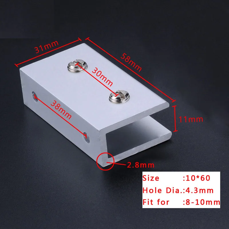 2 шт. стеклянные зажимы Myhomera для 5810 мм держатель для полок угловой кронштейн зажим алюминиевые толстые стеклянные зажимы 6 размеров 8x40 мм 10x60мм