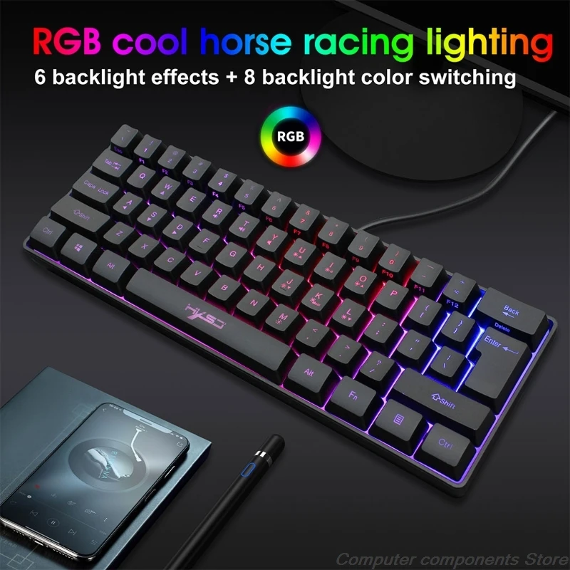 Новинка 2021, игровая клавиатура с RGB подсветкой, 61 клавиша, мини...