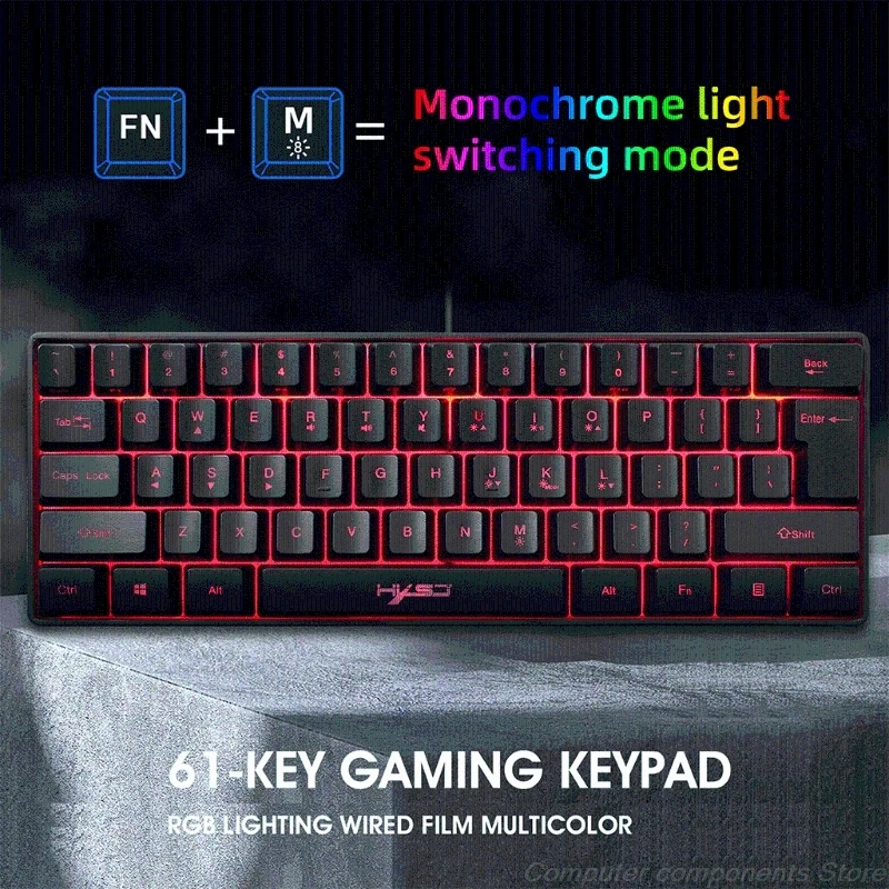 Проводная игровая клавиатура с подсветкой, 61 клавиша, для настольн...