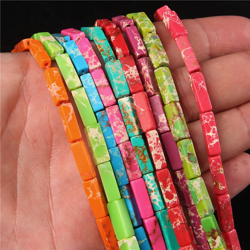Красочные фотобусины, колонна Shoushan, каменные бусины, цилиндрические квадратные трубки, свободные бусины, фотобраслет 15 дюймов