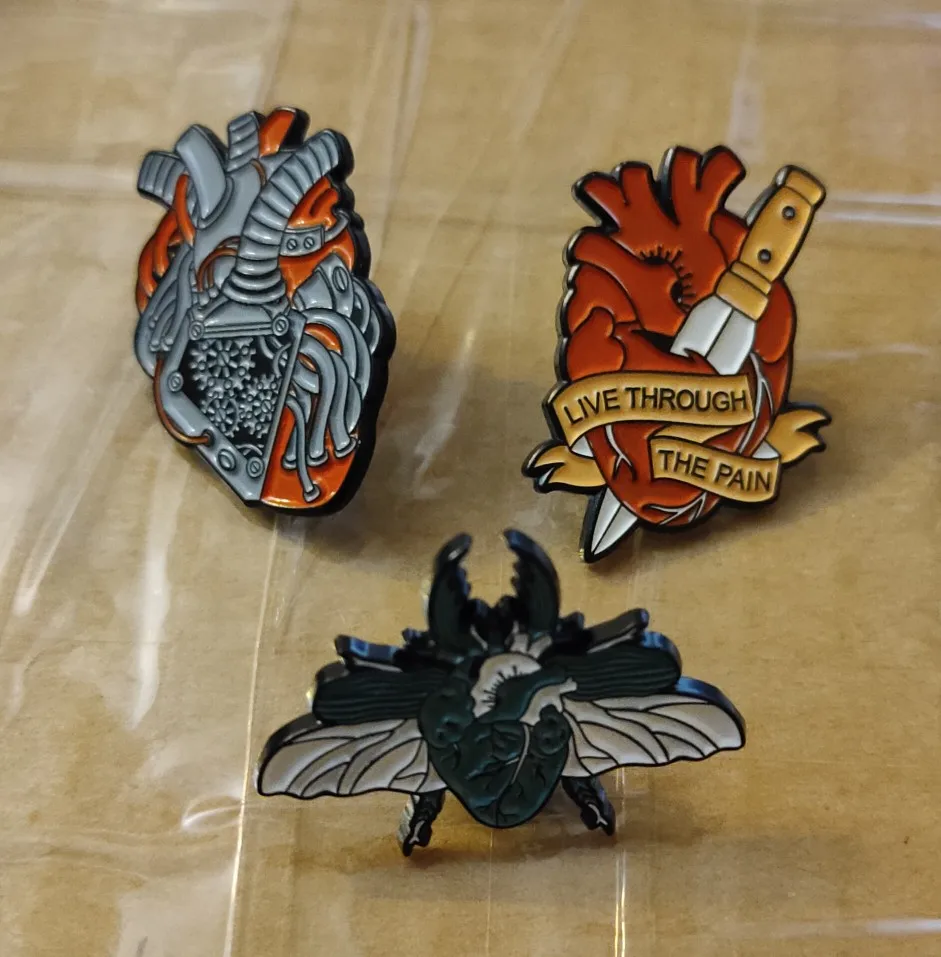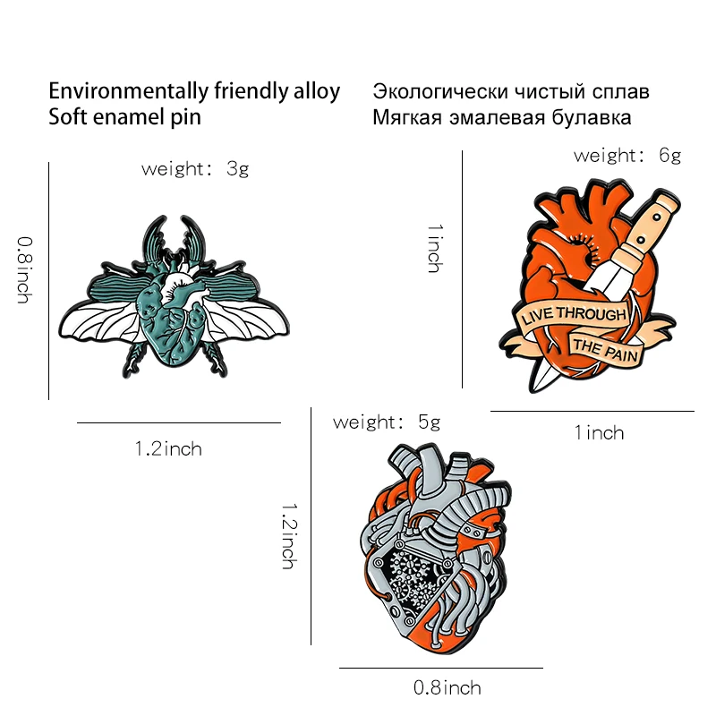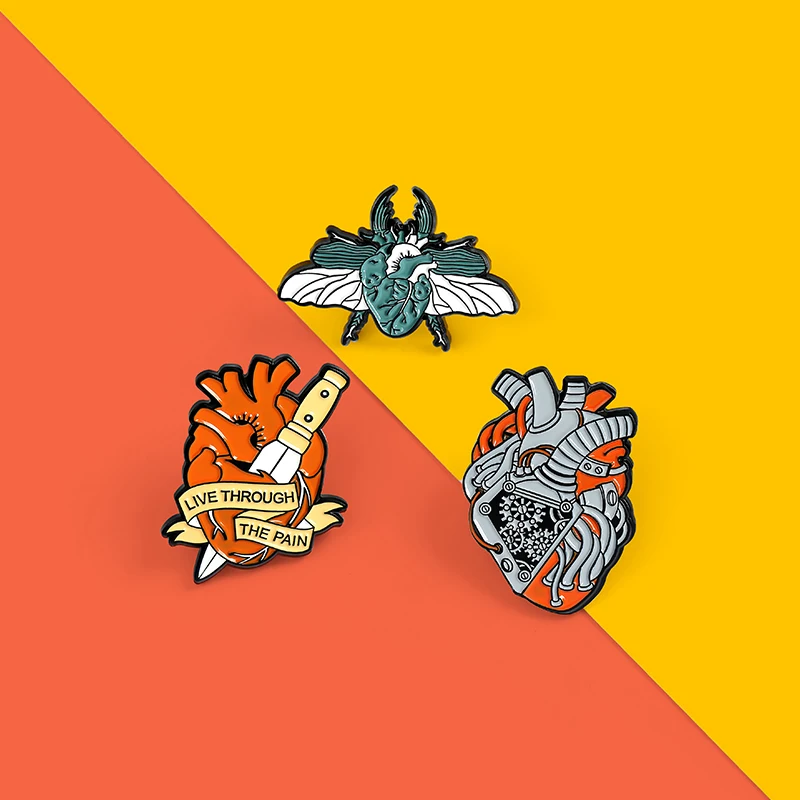 Эмалированные булавки для лацканов с изображением разбитого сердца, кинжала, насекомых, машины, сердец, анатомии, боли, баннер с кинжалом, памятный значок для старой школы