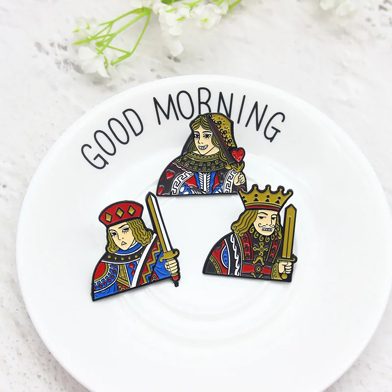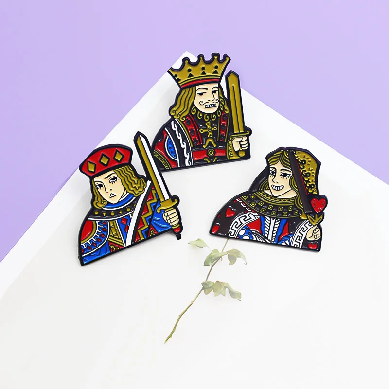 Новинка броши в стиле покера Король Королева рыцарь J Q K эмалированная булавка для сумки одежды булавка для лацкана значок ювелирное изделие подарок для друзей