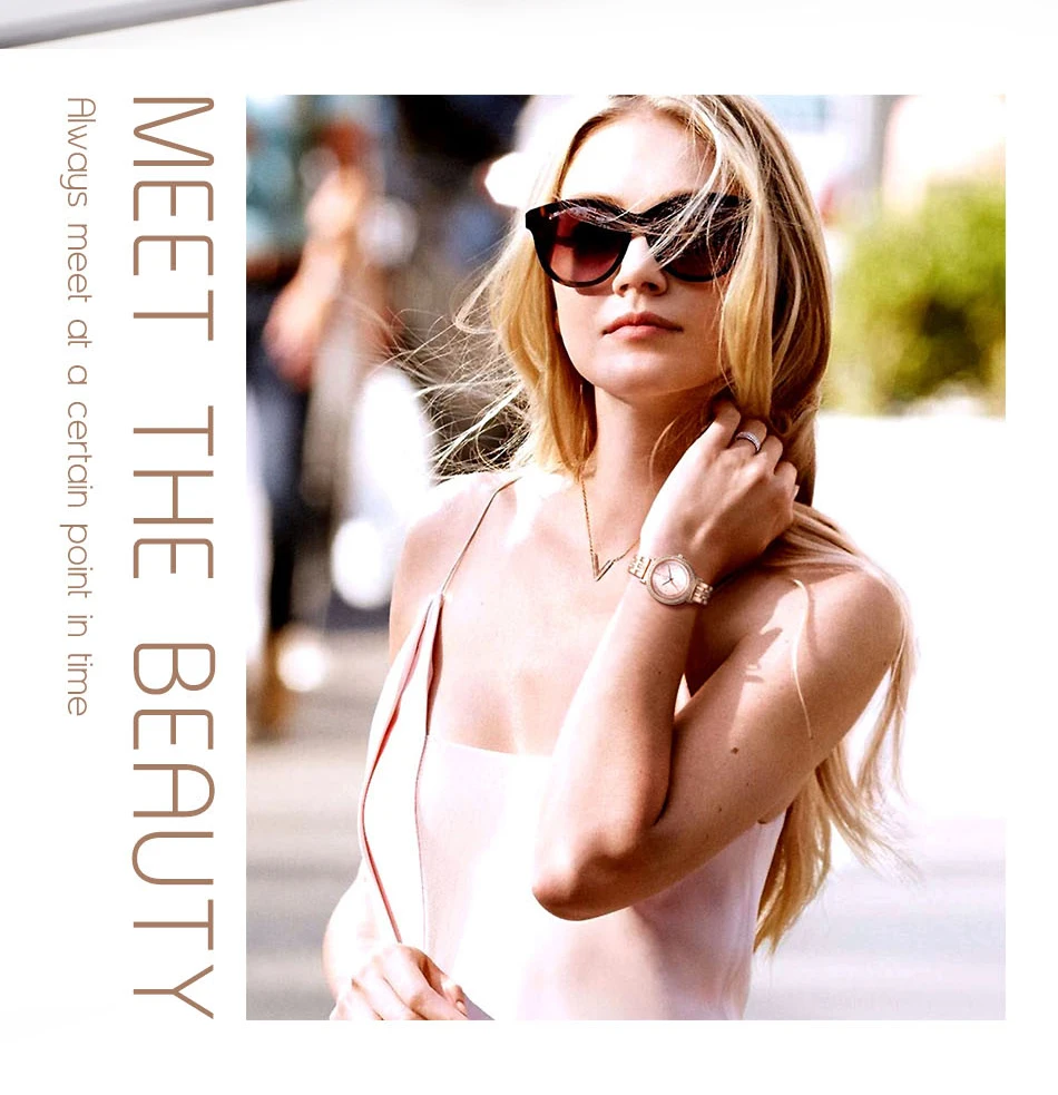 Часы женские кварцевые из нержавеющей стали, розовое золото